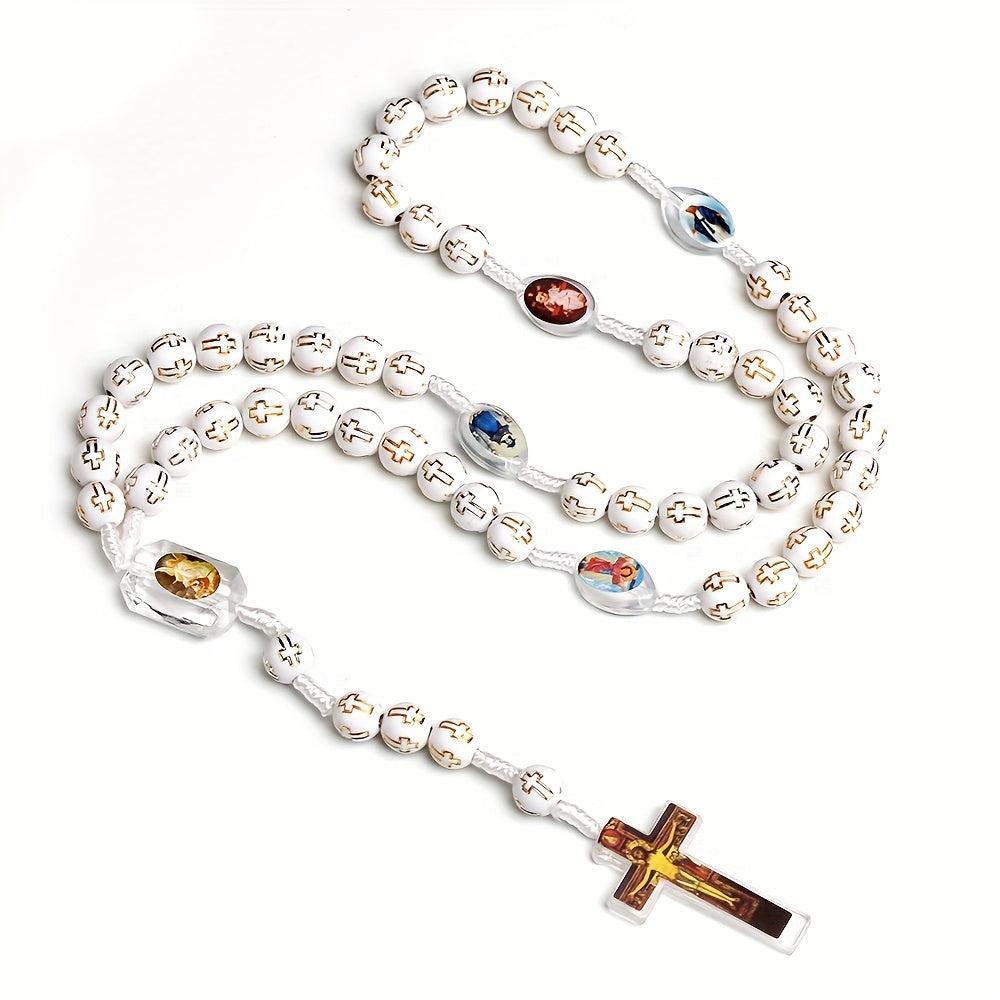 This Catholic Christian Rosary Cross Necklace is a beautiful and meaningful piece for men and women. It features a Bohemian style design that adds a unique touch to your outfit. Makes a perfect gift for Easter or Mother's Day.