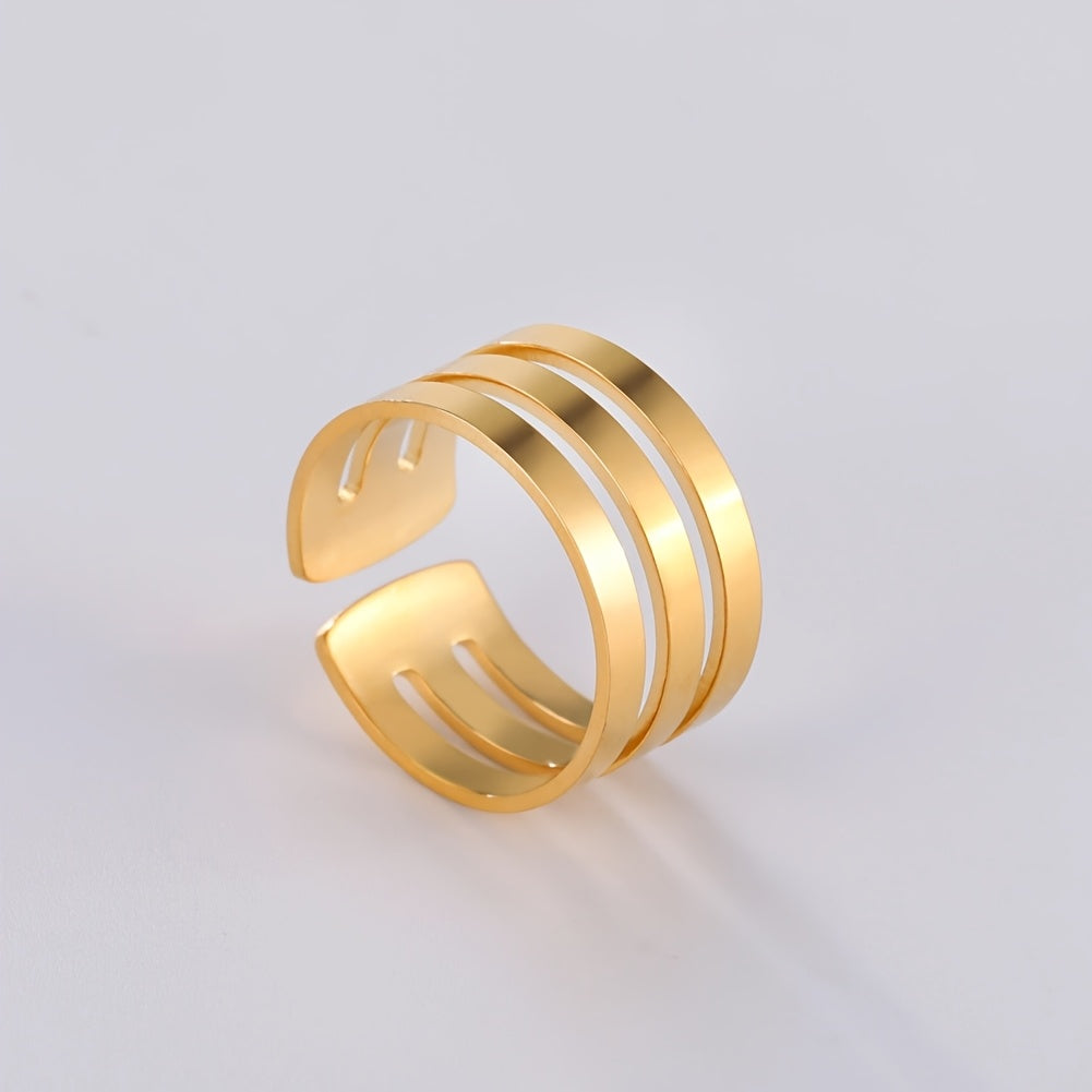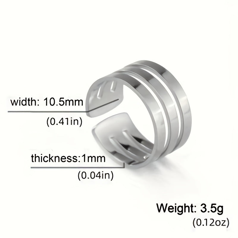 This stylish ring is made of high-quality stainless steel, features a unique geometric design and is adjustable to fit any finger size. It is a perfect gift for weddings or anniversaries.