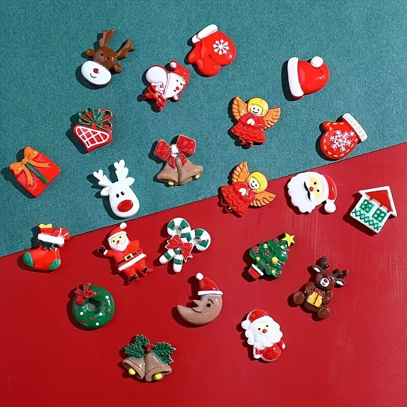 Get 10-20pcs of Christmas-themed flat back resin charms for embellishing hair clips, phone cases, photo frames, and scrapbooks. Add festive flair to your projects!