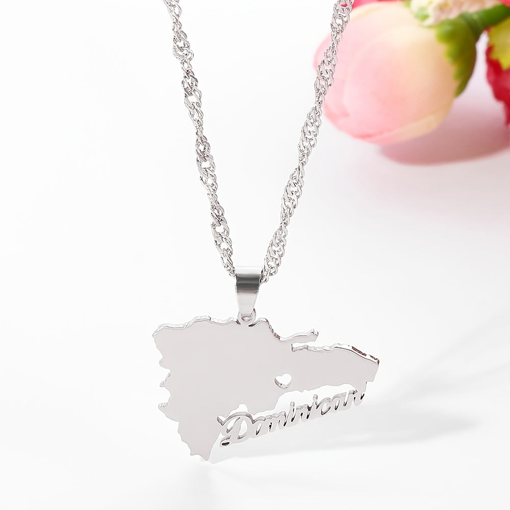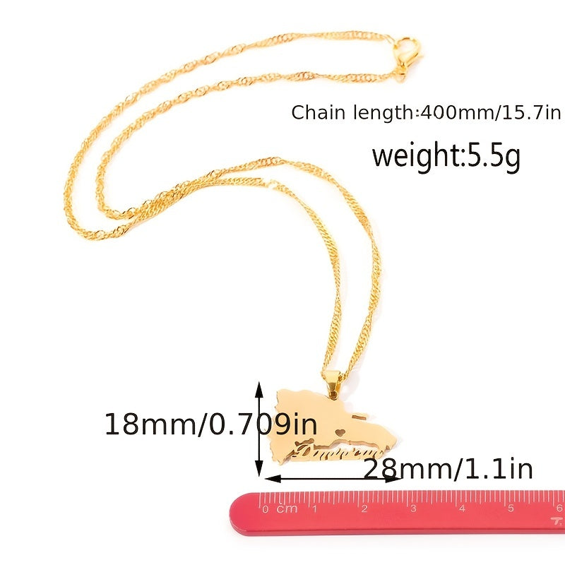 This stylish pendant necklace features a map design with the name of a city. Made of durable stainless steel, this necklace is a perfect accessory for any urban explorer.