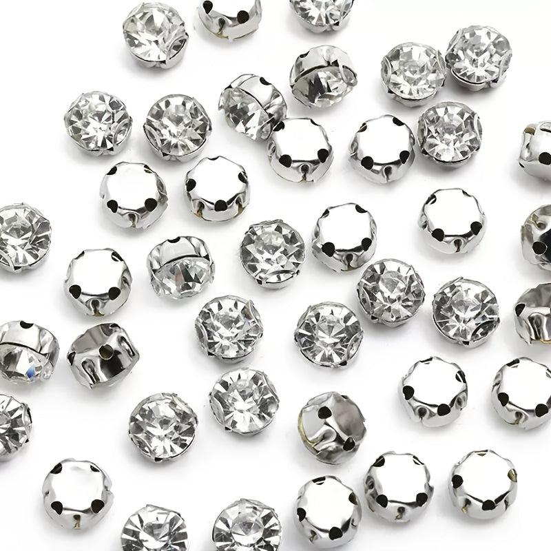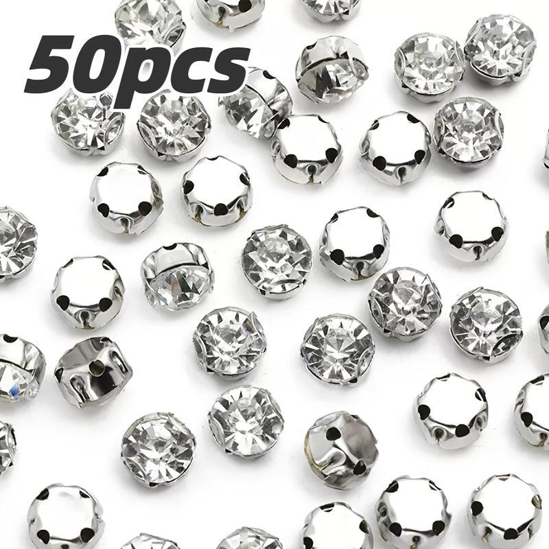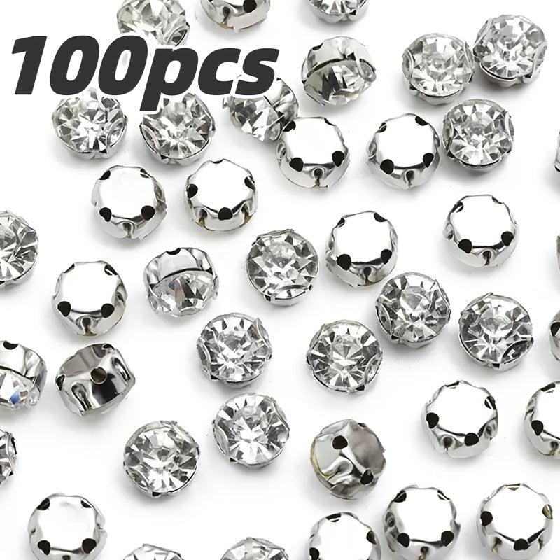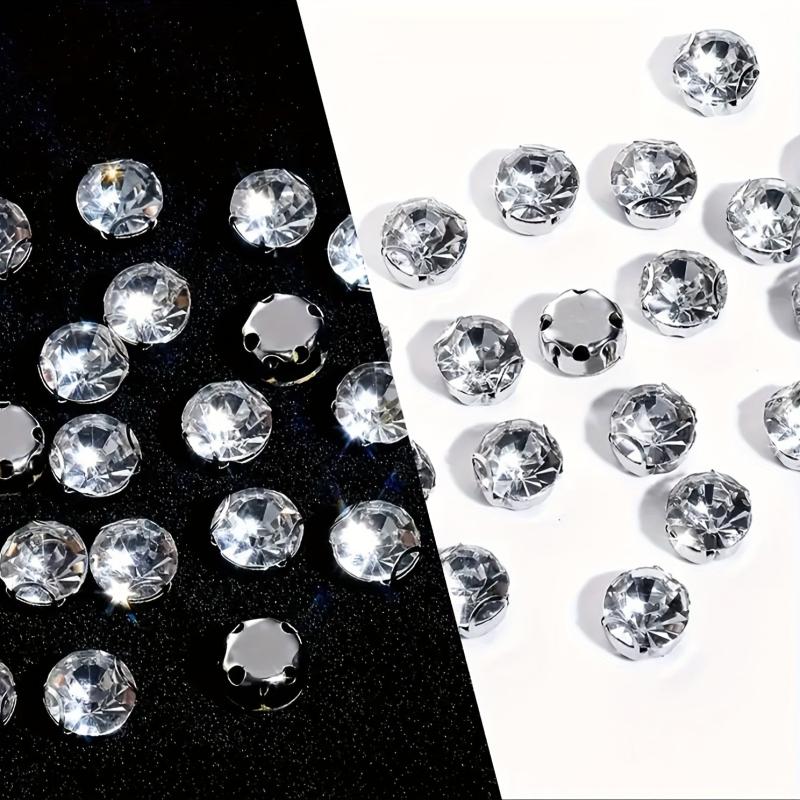 Add a touch of elegance to your bags, dresses, and more with these clear round flatback sew on stones. Each stone comes with 2 holes for easy sewing. Available in a pack of 50 or 100 pieces.