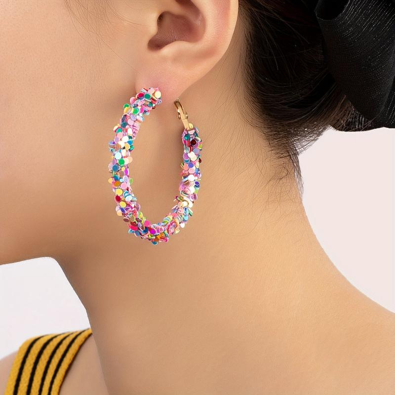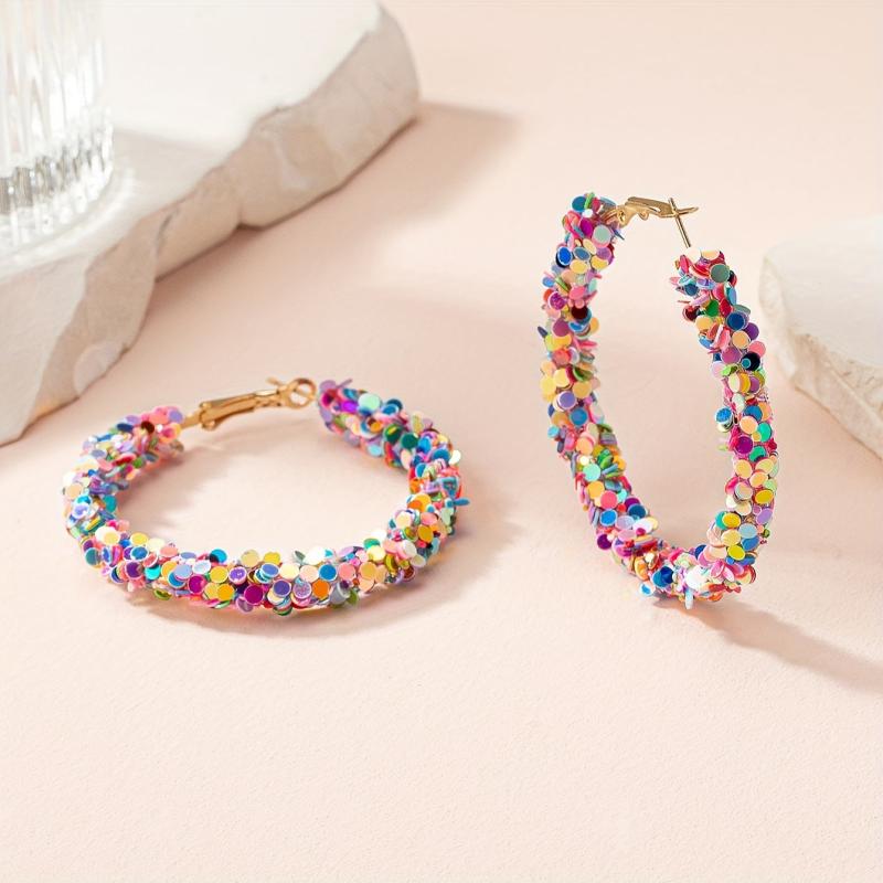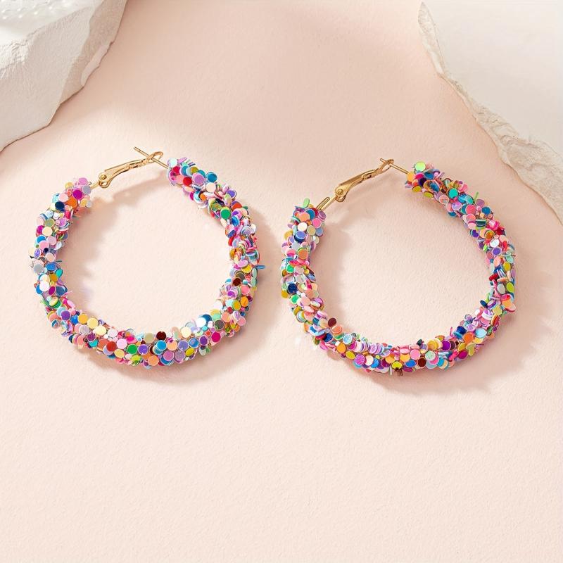 Add a pop of vibrant color to your outfit with these shimmering candy-inspired earrings. Perfect for music festivals, parties, and everyday festive accessories.