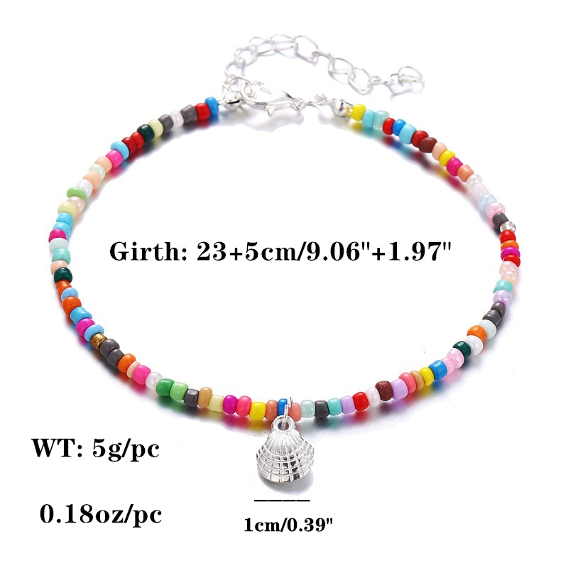Add a touch of retro charm to your beach look with this colorful bead shell anklet. This anklet features a shell pendant for a whimsical touch.