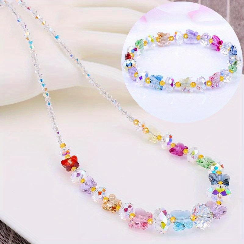 Create your own stunning bracelet with this DIY kit featuring colorful butterfly charms and crystal beads.