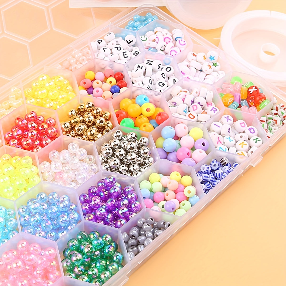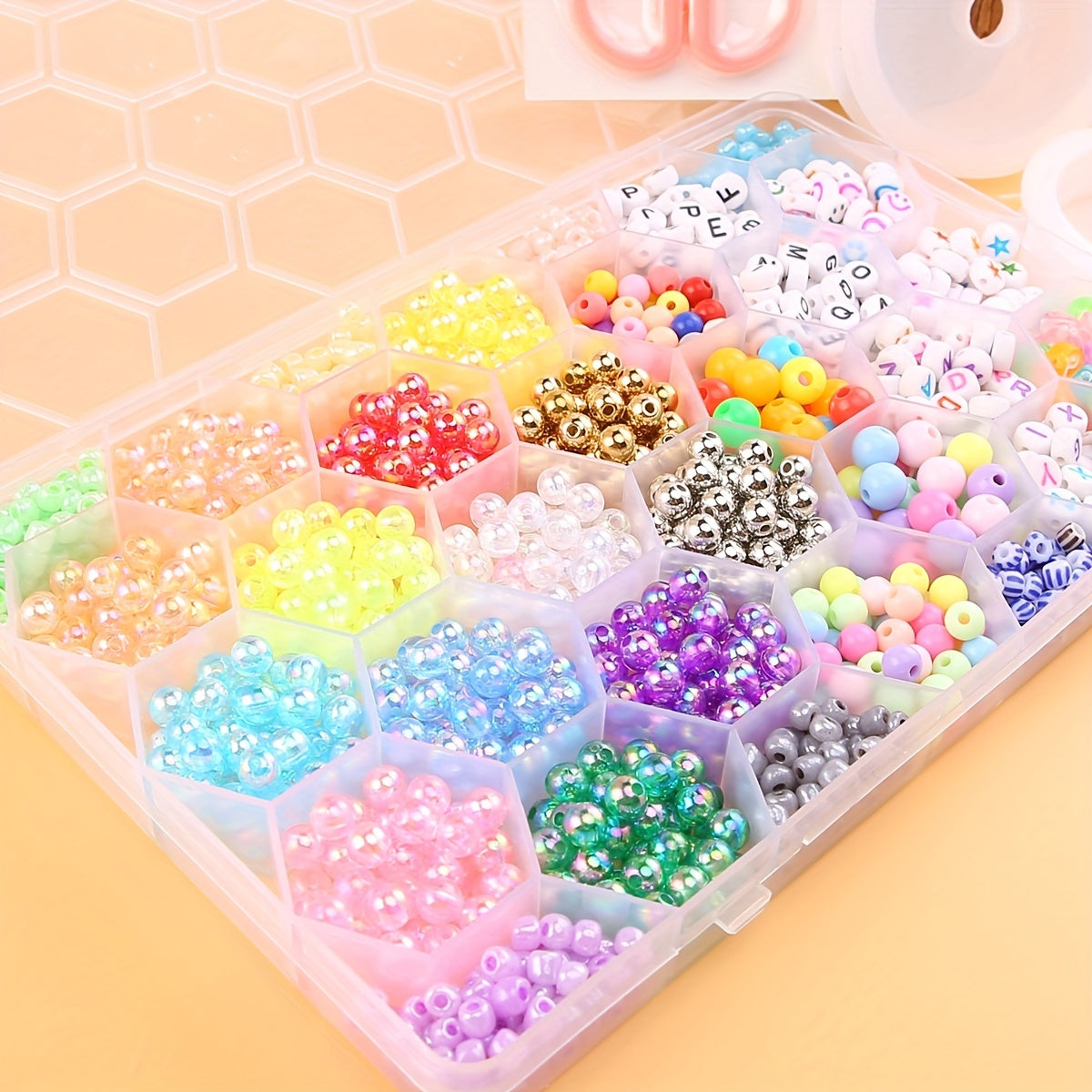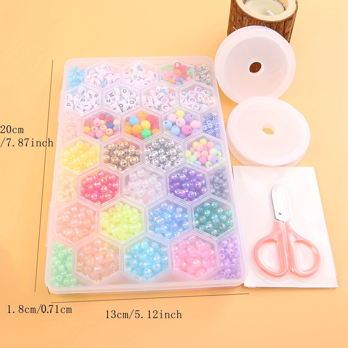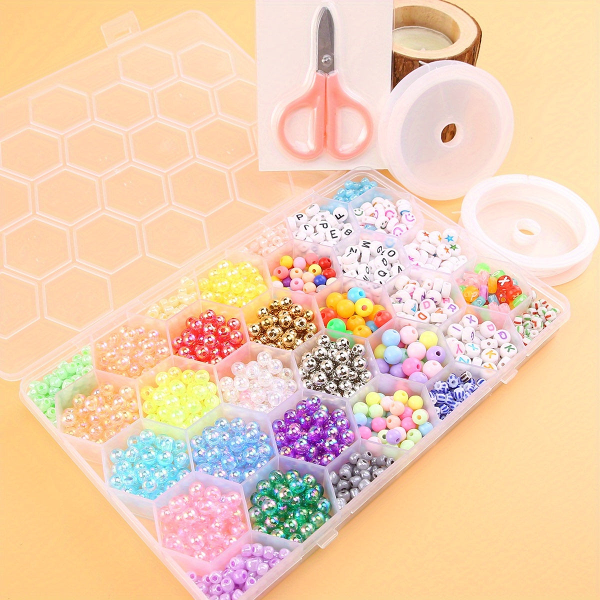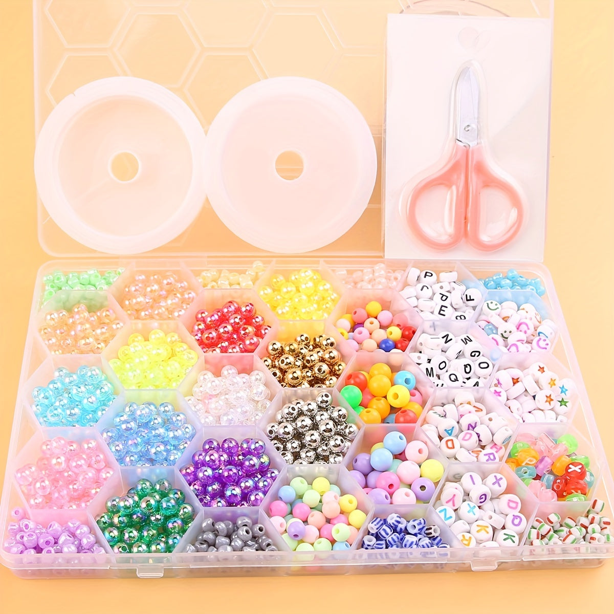 Create your own unique jewelry with this bead set. Includes beads, scissors, elastic thread, and more. Perfect for DIY necklaces, bracelets, and accessories.