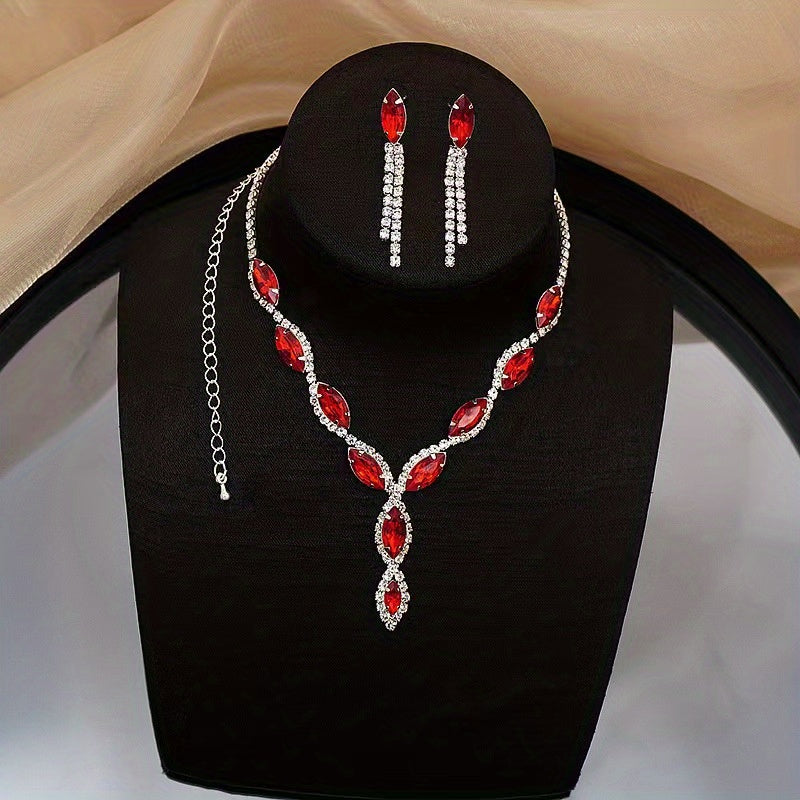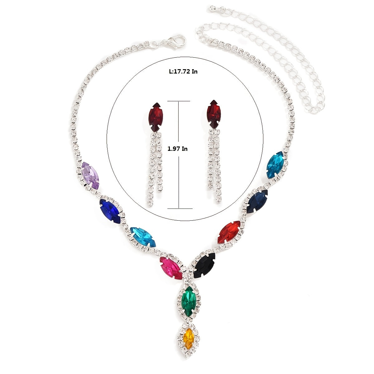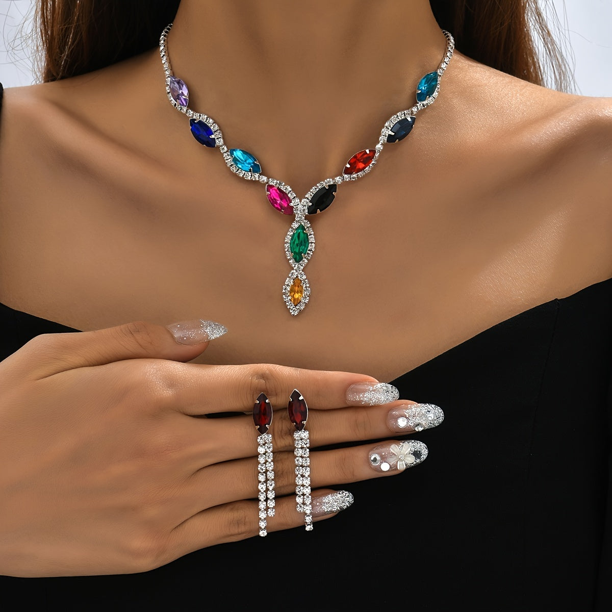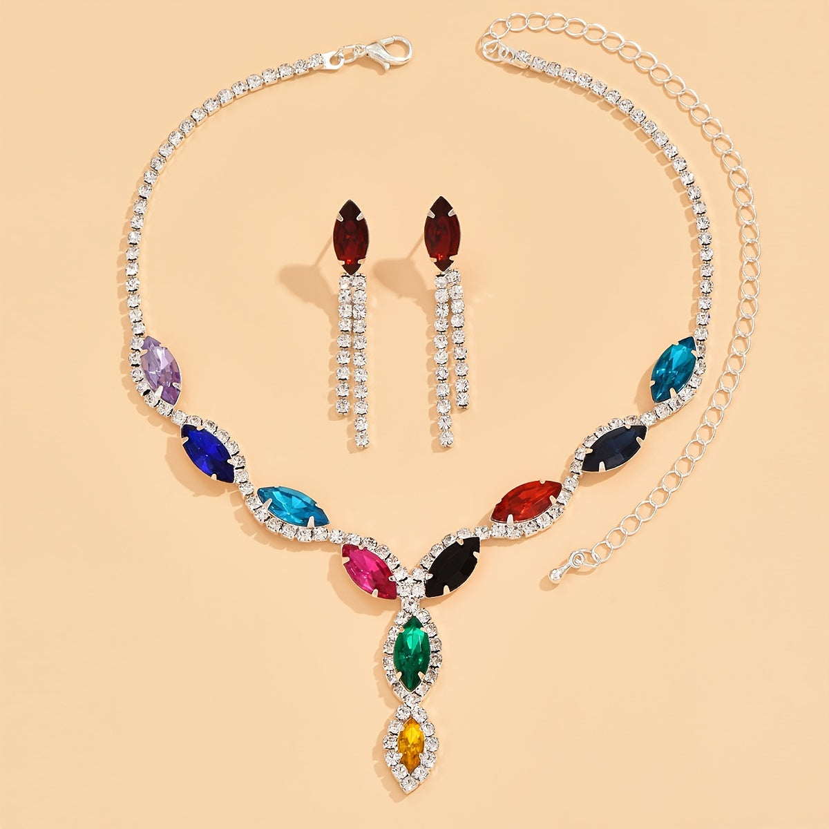 This beautiful 2-piece set includes a colorful crystal necklace and matching earrings, perfect for adding a touch of sparkle to any outfit.