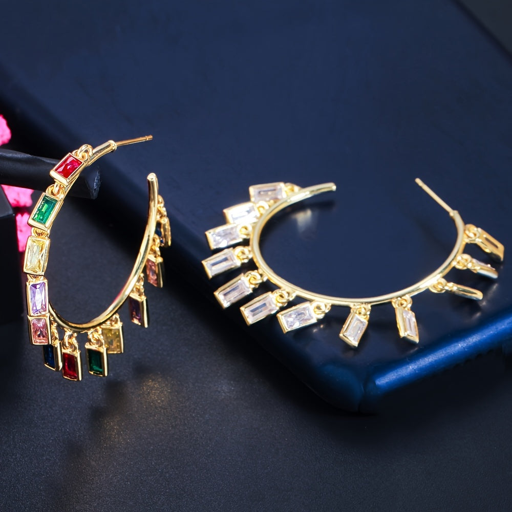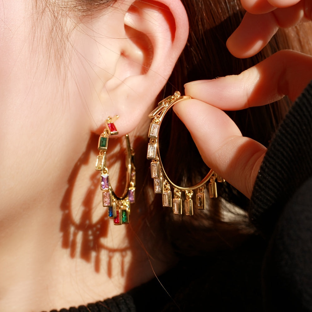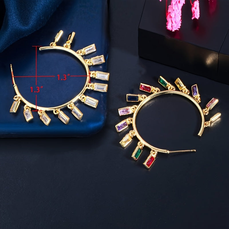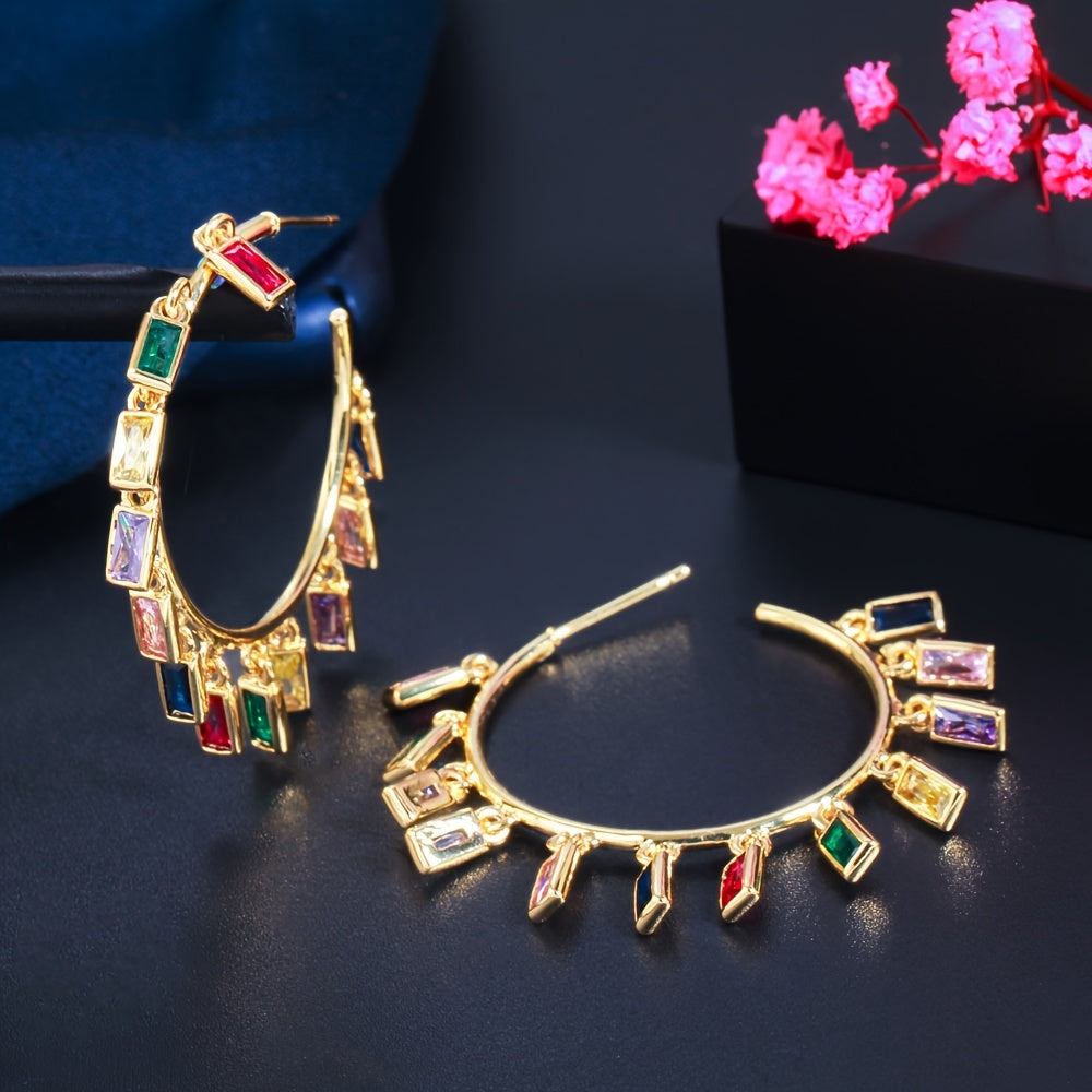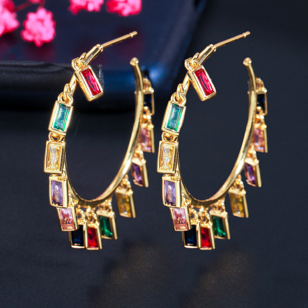 Colorful Hoop Earrings Stone Large Punk Rainbow Circle Earring Jewelry