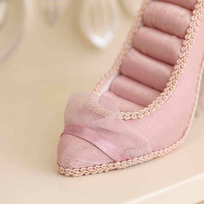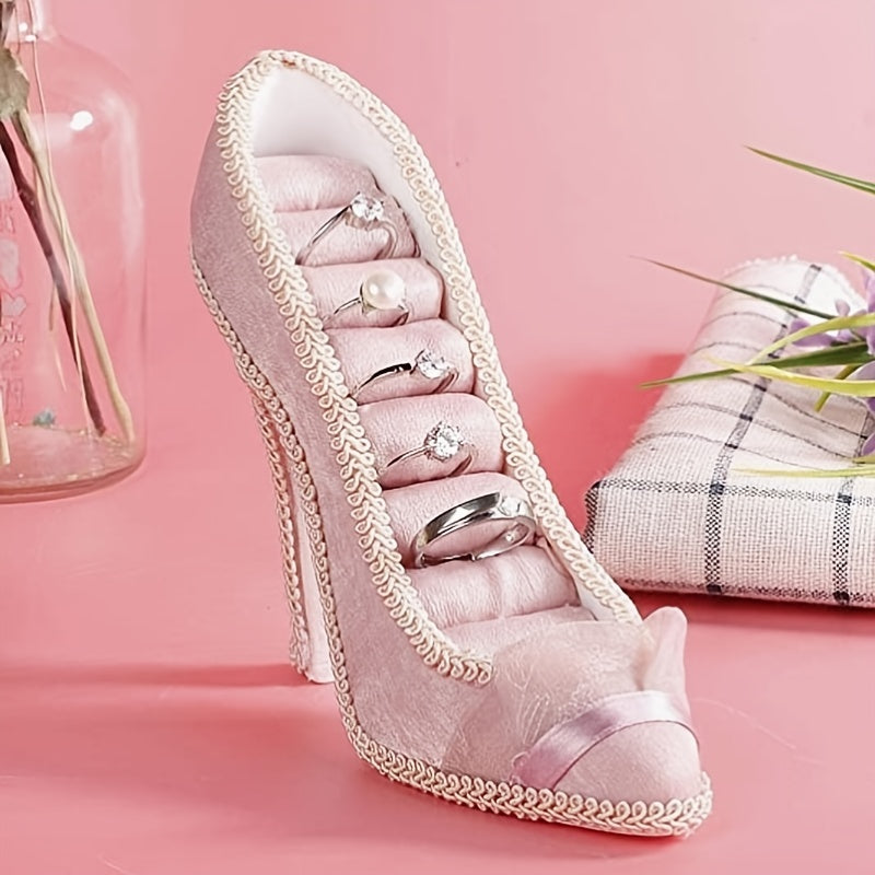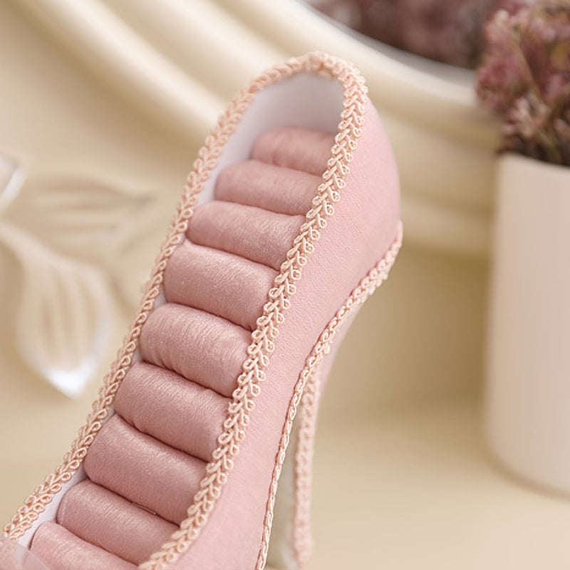 This high heel shoes jewelry holder stand in pink is perfect for organizing rings, bracelets, necklaces, brooches, and pins.