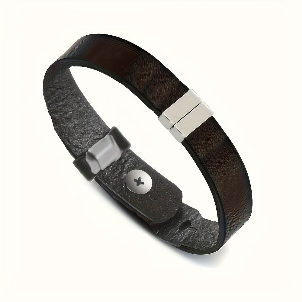 Personalized father's gift made of coffee leather and durable stainless steel accents. This stylish and casual bracelet is perfect for dad, husband, or men.