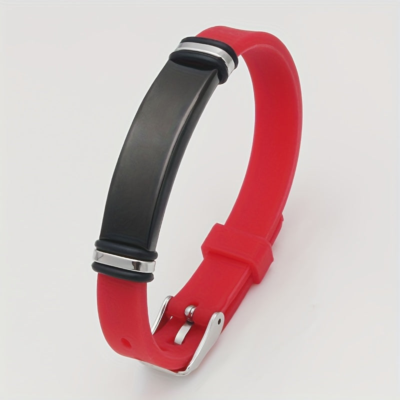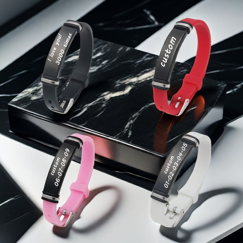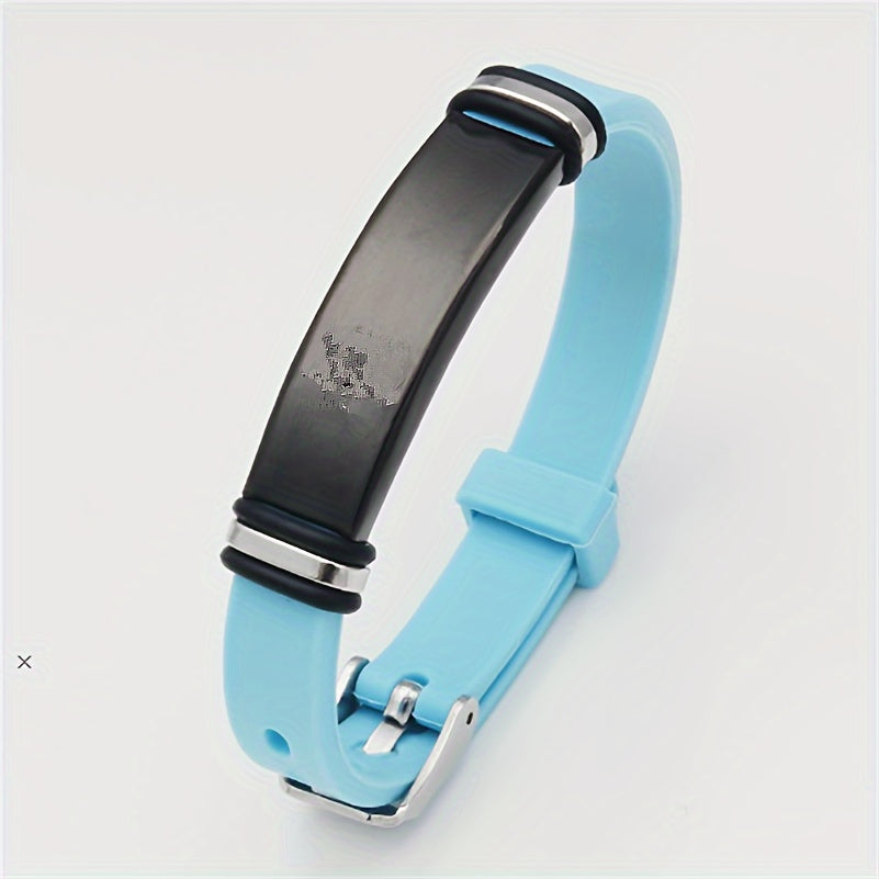 This silicone wristband can be customized with your phone number, name, date, or initials. Perfect gift for sons and daughters. Adjustable and comfortable to wear.