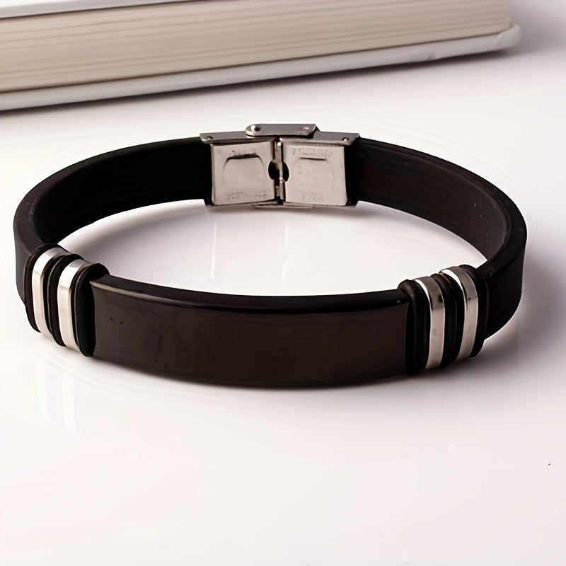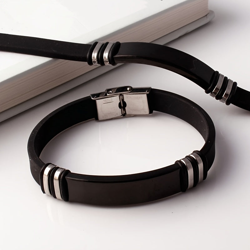 This laser engraved bracelet is made from durable titanium and 201 stainless steel with silicone for everyday wear. Perfect gift for birthdays, anniversaries, or as a personal accessory.