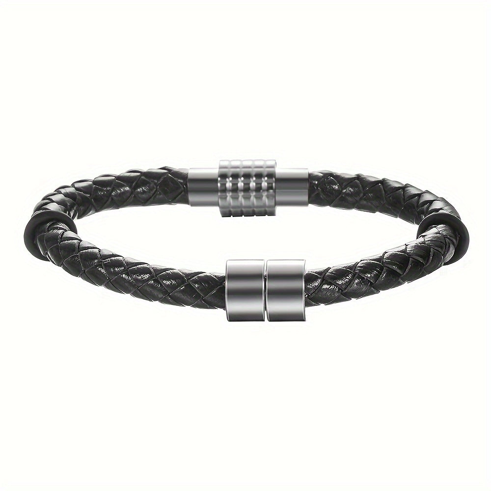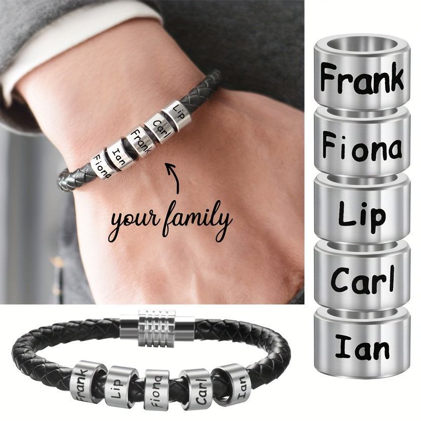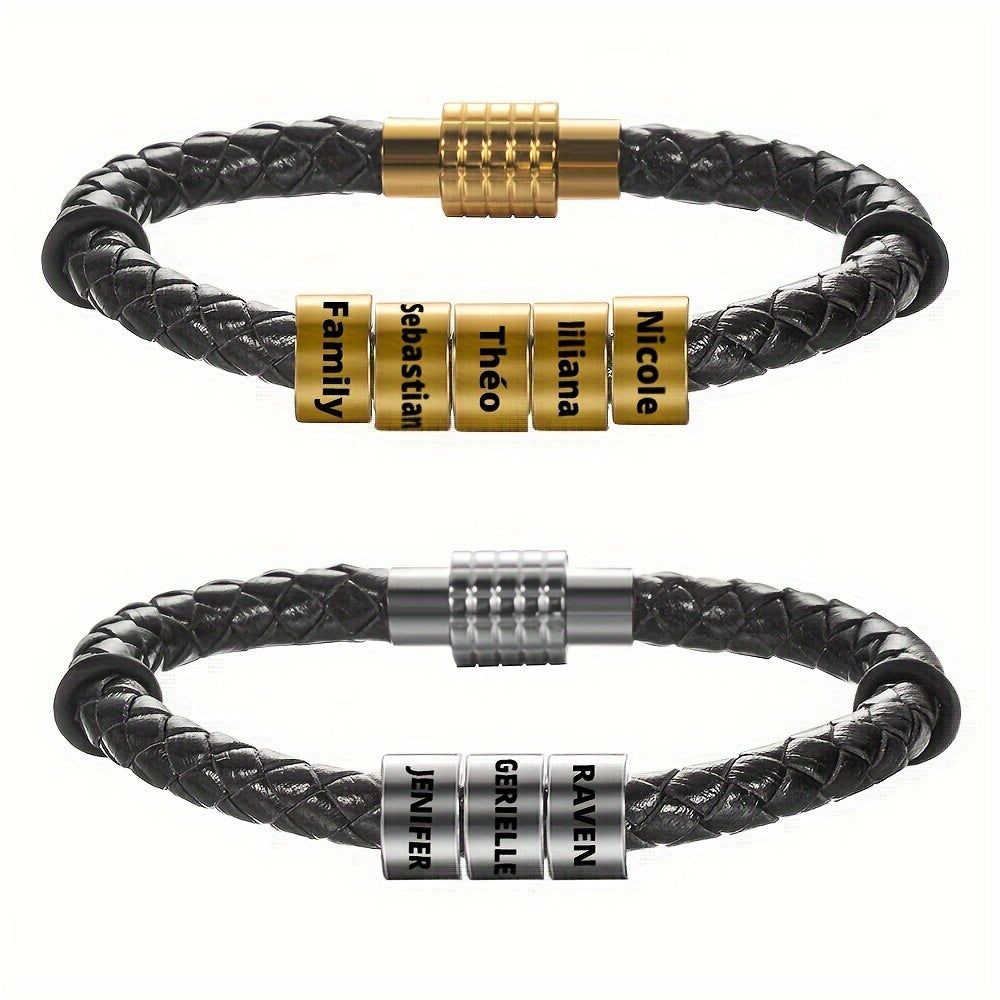 Surprise your father with this stylish leather bangle that can be personalized with your family name. Made from high-quality materials, this chunky bracelet is a perfect gift for any occasion.