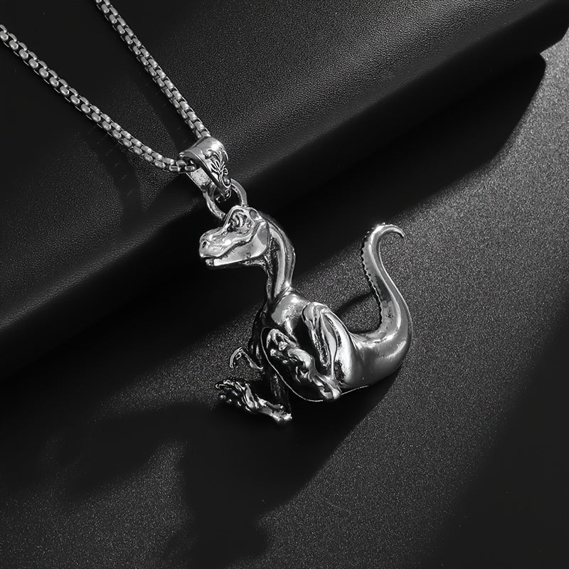 Embrace your funky side with this dinosaur pendant necklace that exudes punk, hip hop, and rock style. Made of high-quality zinc alloy, this necklace is the perfect accessory for parties or casual outings.