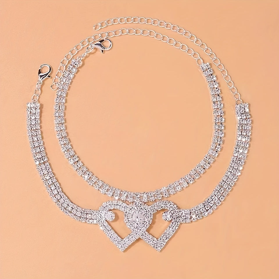Add a touch of elegance to your beach look with this double love rhinestone anklet. A perfect accessory for any outfit.