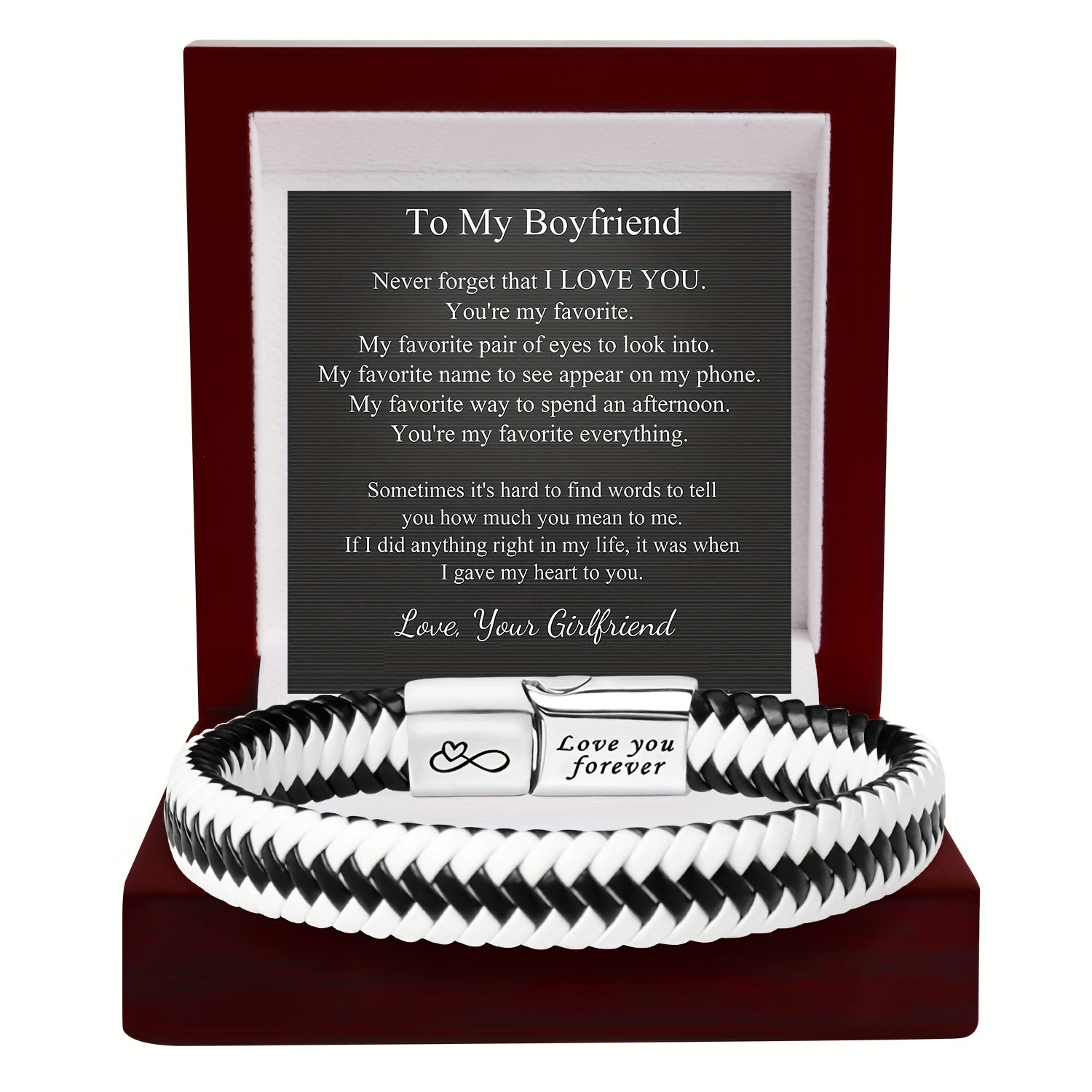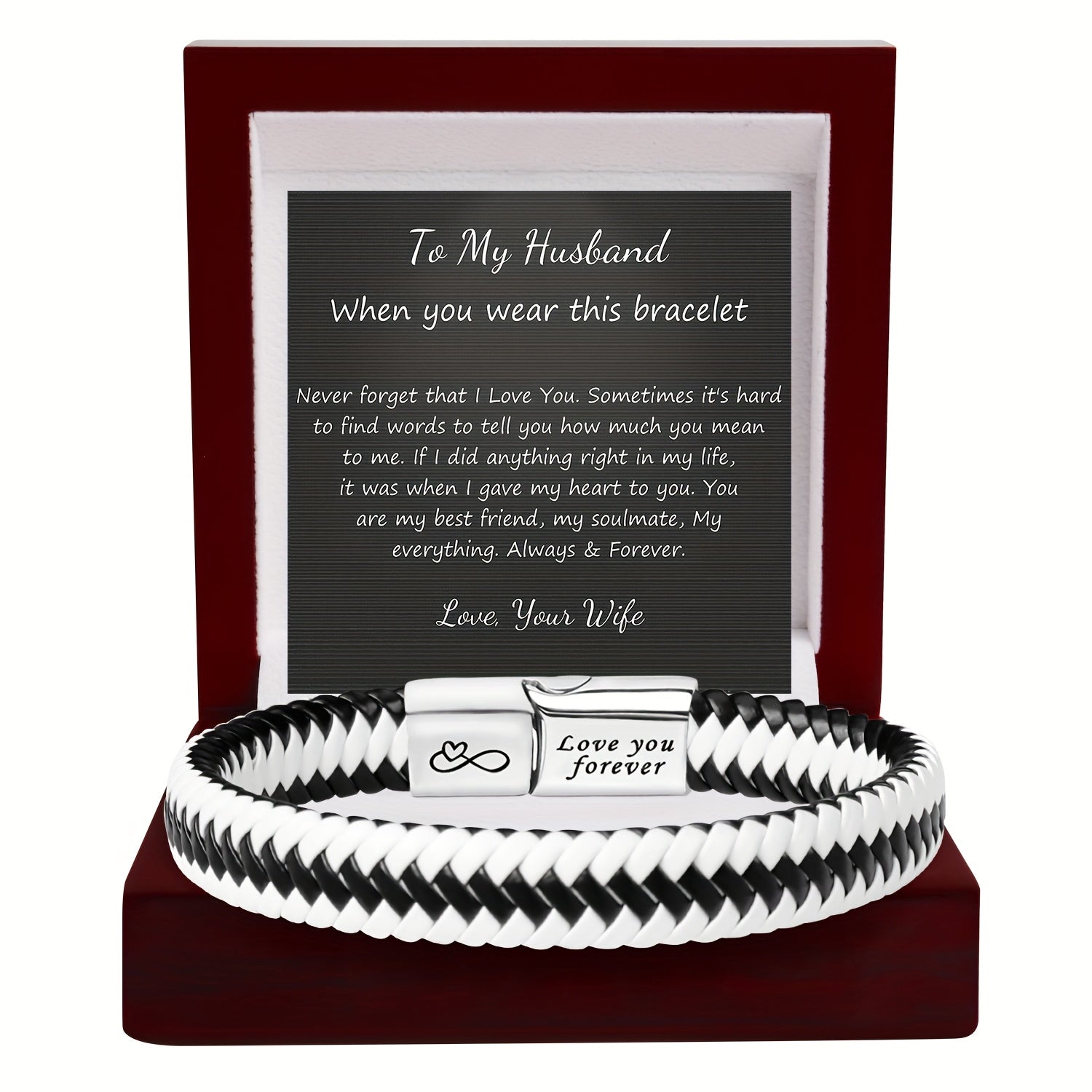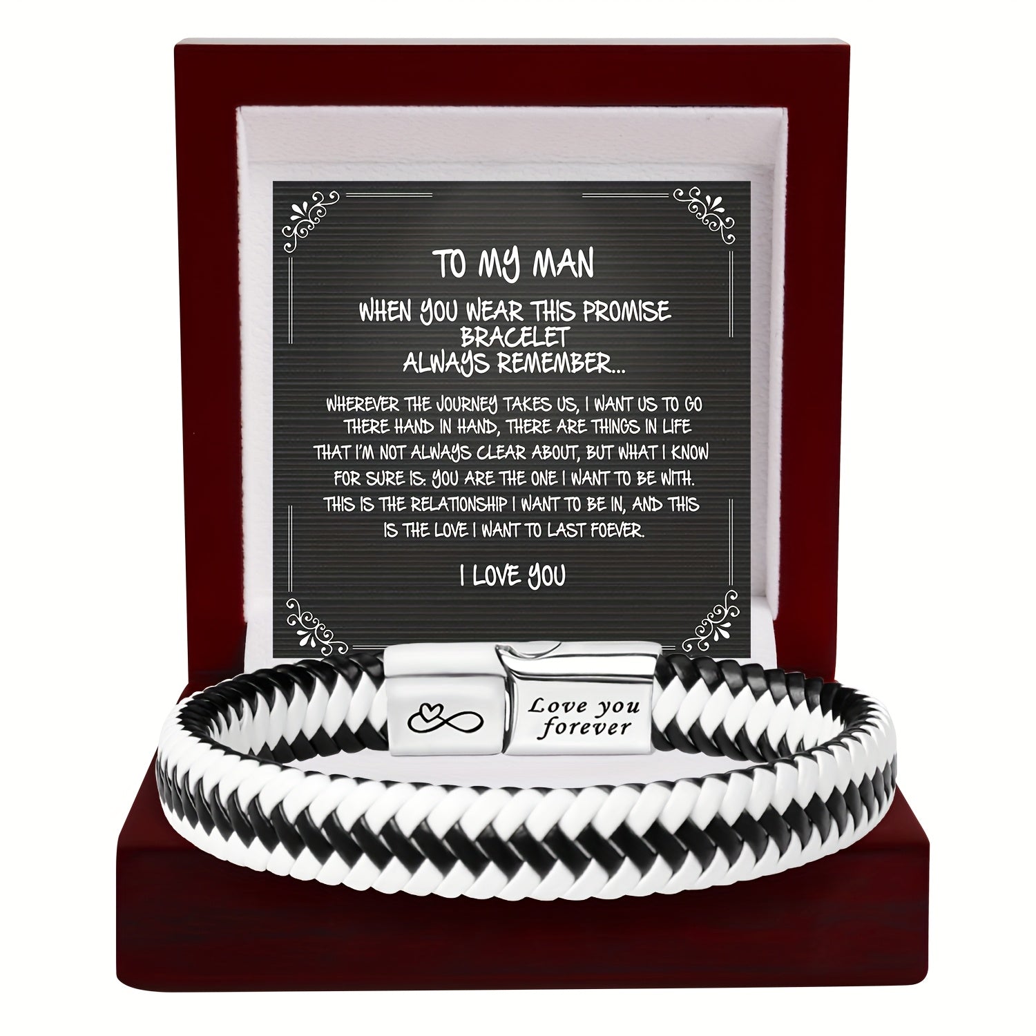 Surprise your loved one with this stylish faux leather bracelet, perfect for Easter, birthdays, Father's Day, graduation, or daily wear. Show your man how much you care with this thoughtful gift!