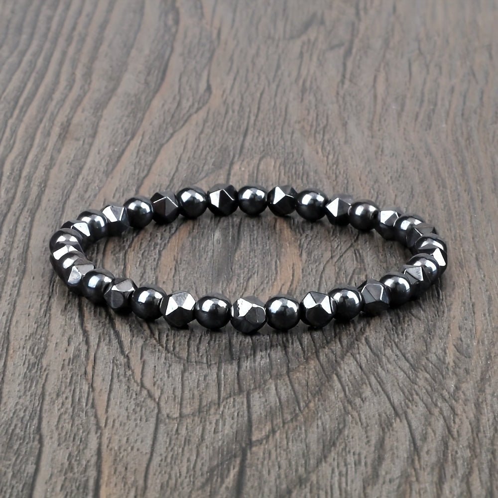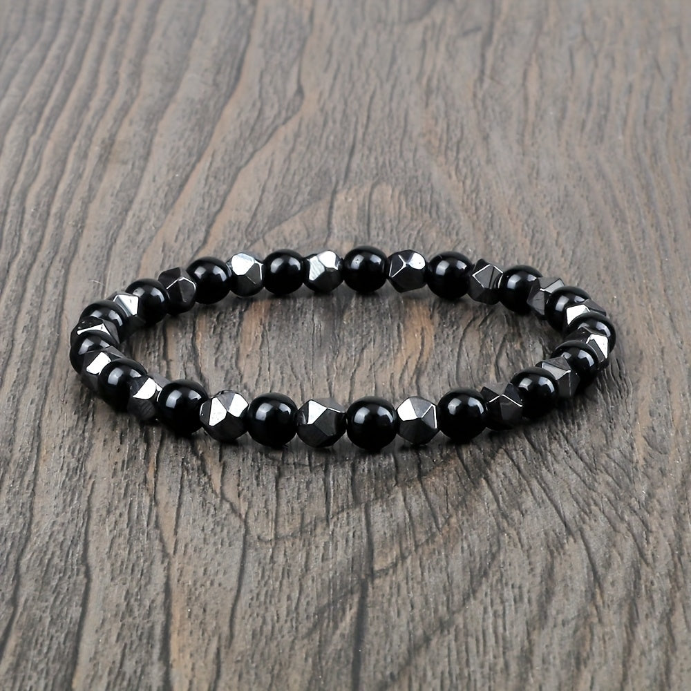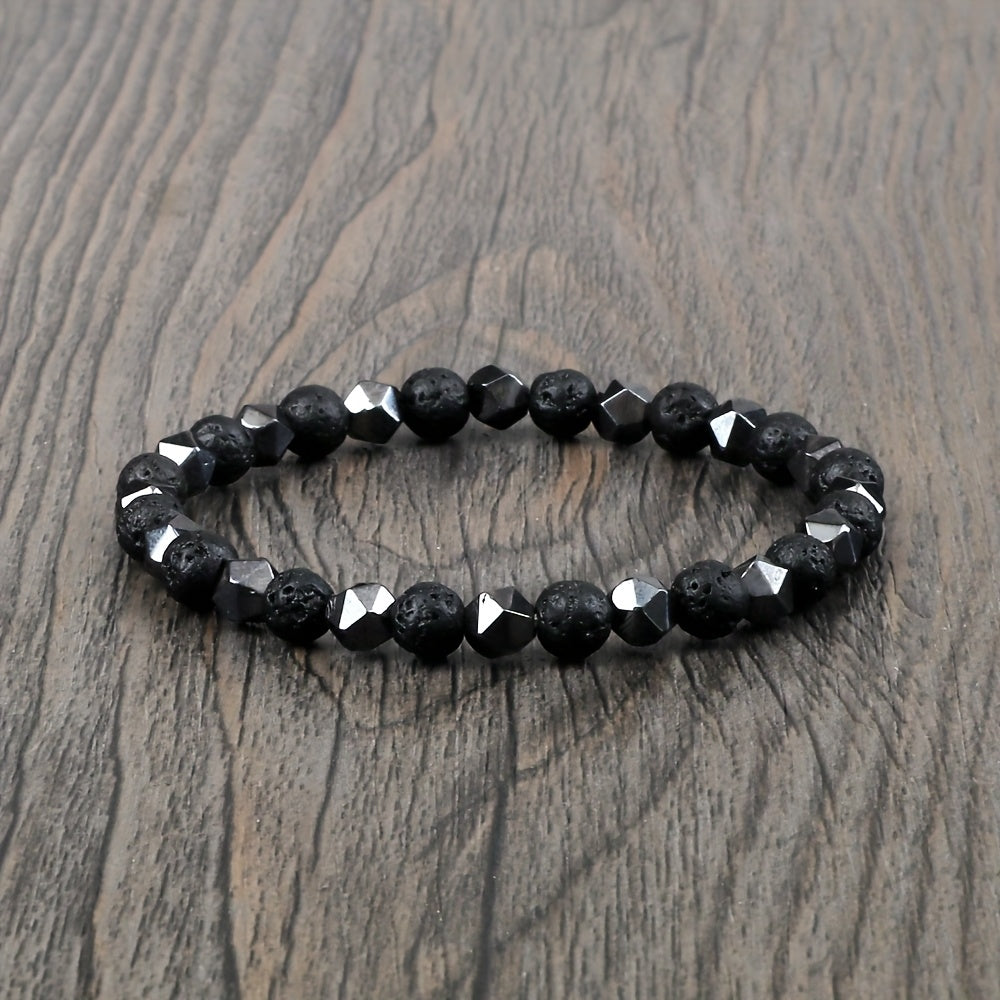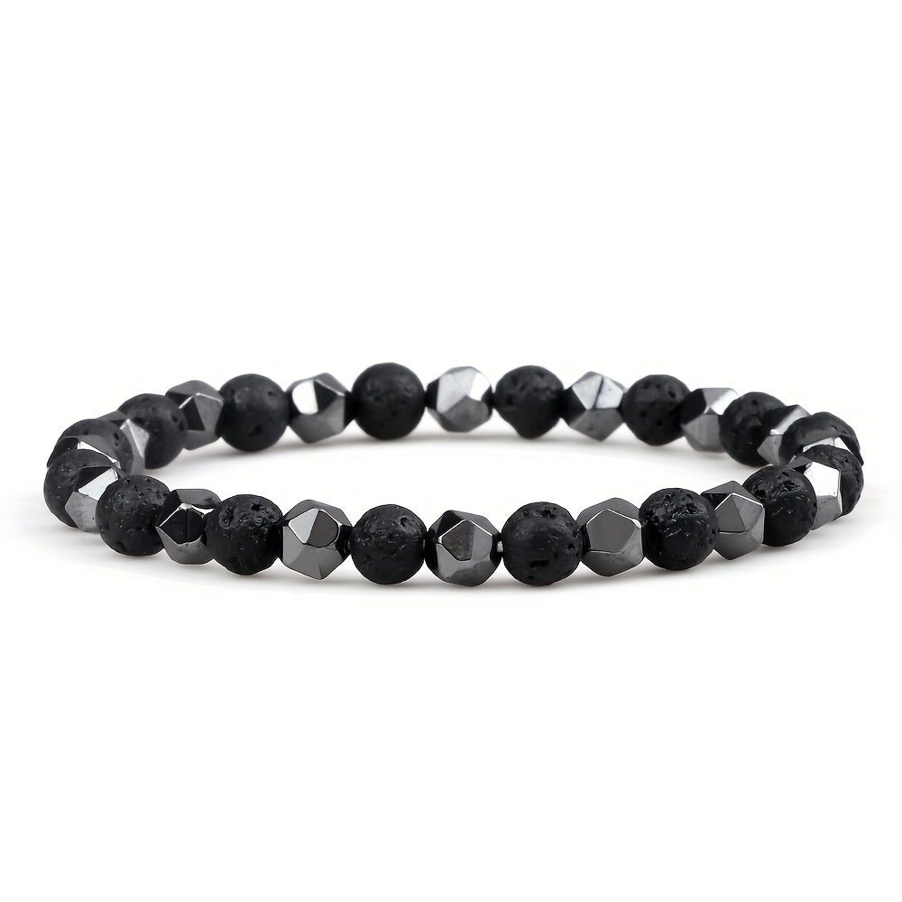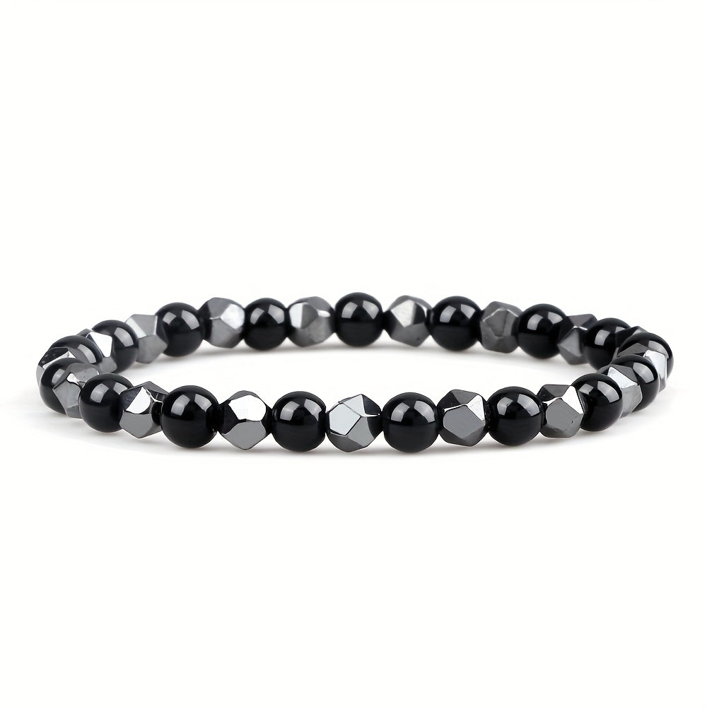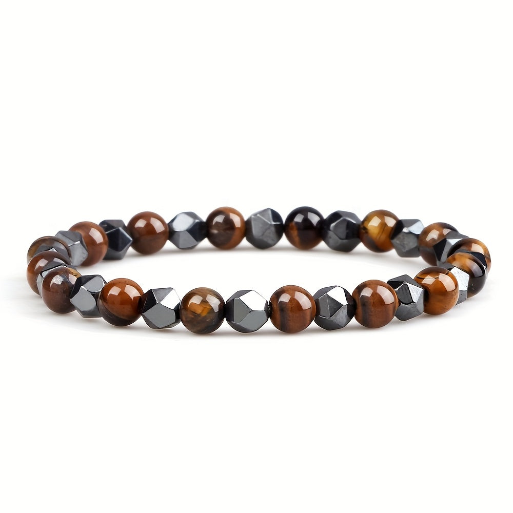 This natural stone bracelet features gallstone accents and is perfect for both men and women. It has an adjustable stretch fit and is durable for year-round wear. Ideal for parties and celebrations.