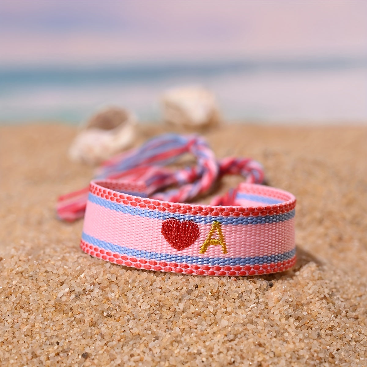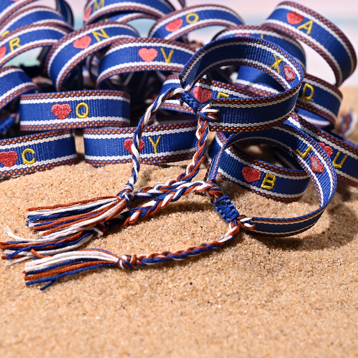 Trendy European and American wristbands for men and women, featuring embroidered love letters and surnames with tassels.