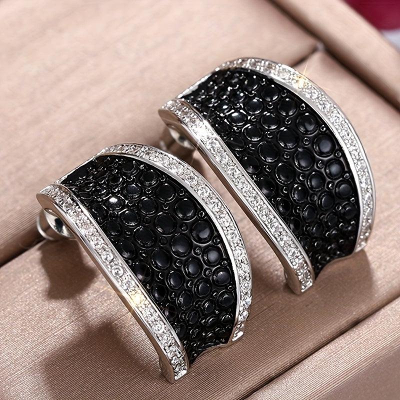 Enhance your style with these elegant enamel C shape earrings embellished with synthetic zirconia. Perfect for everyday wear or special occasions.