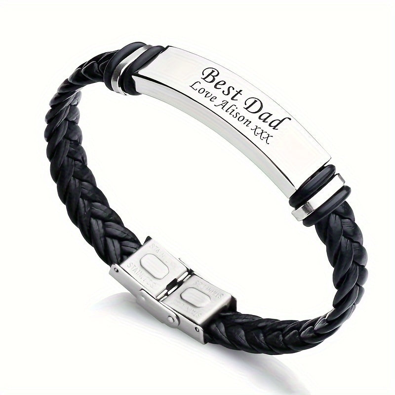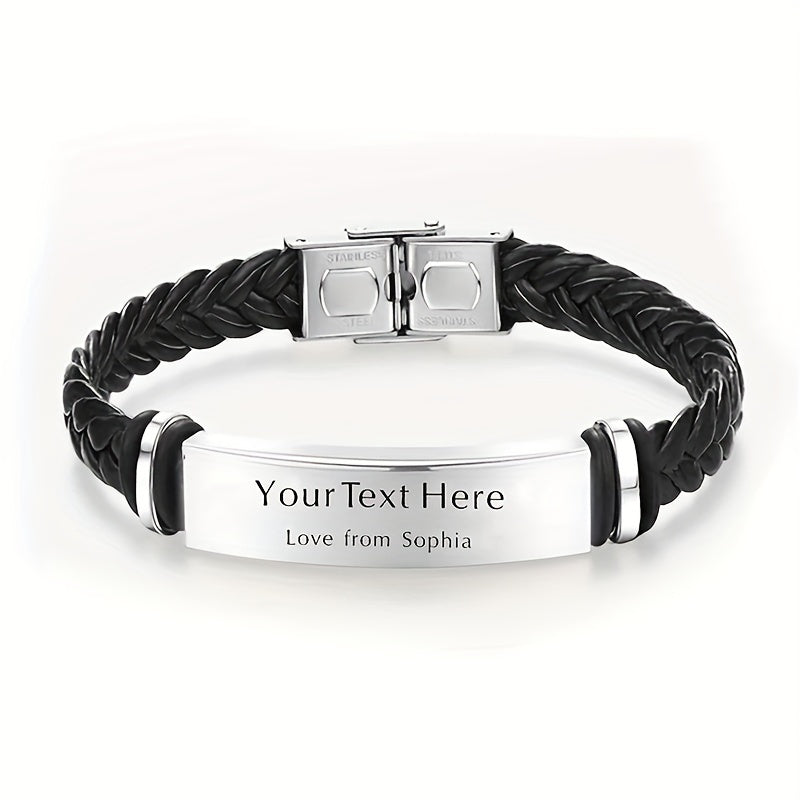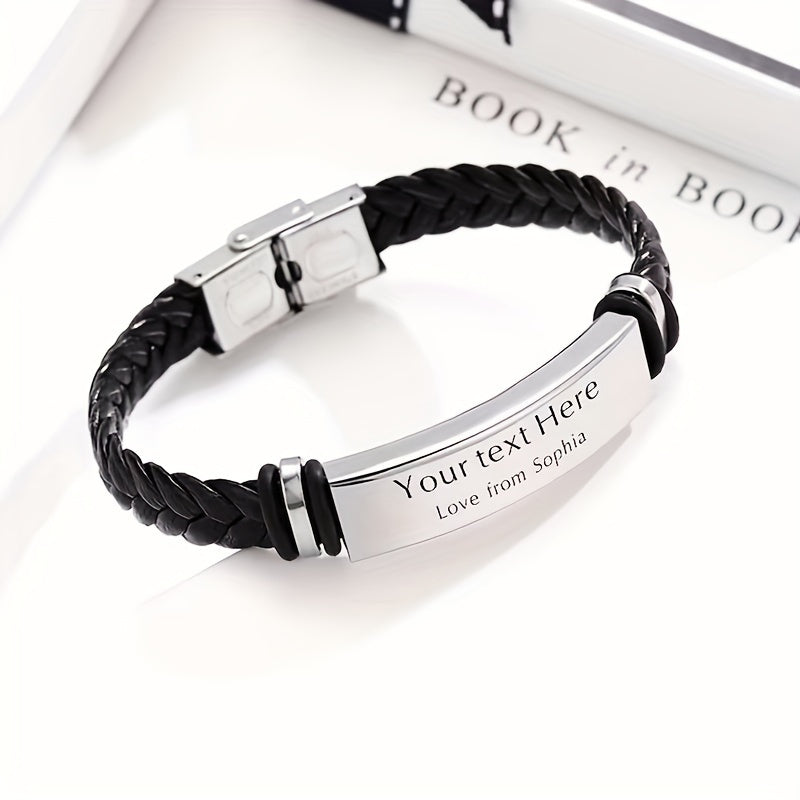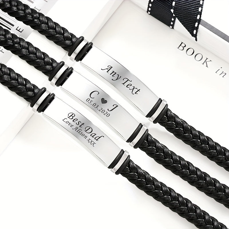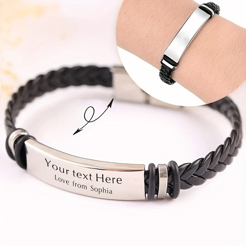 Surprise him with a custom engraved bracelet featuring any text. Perfect for birthdays, weddings, or Christmas.