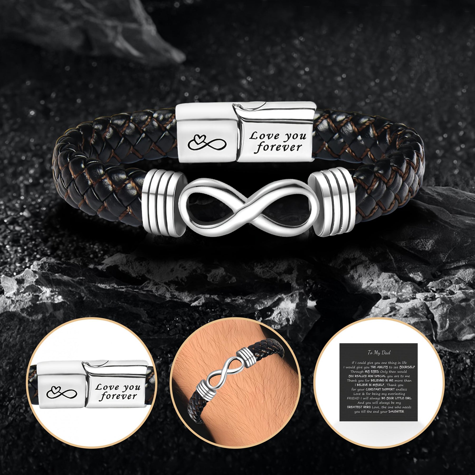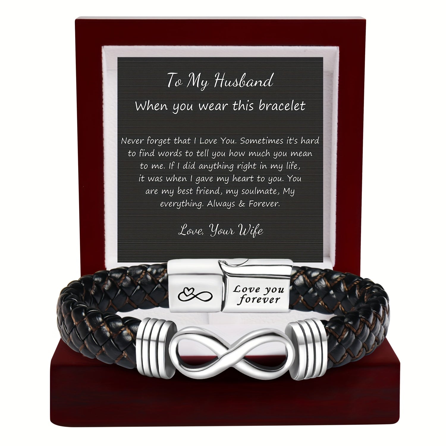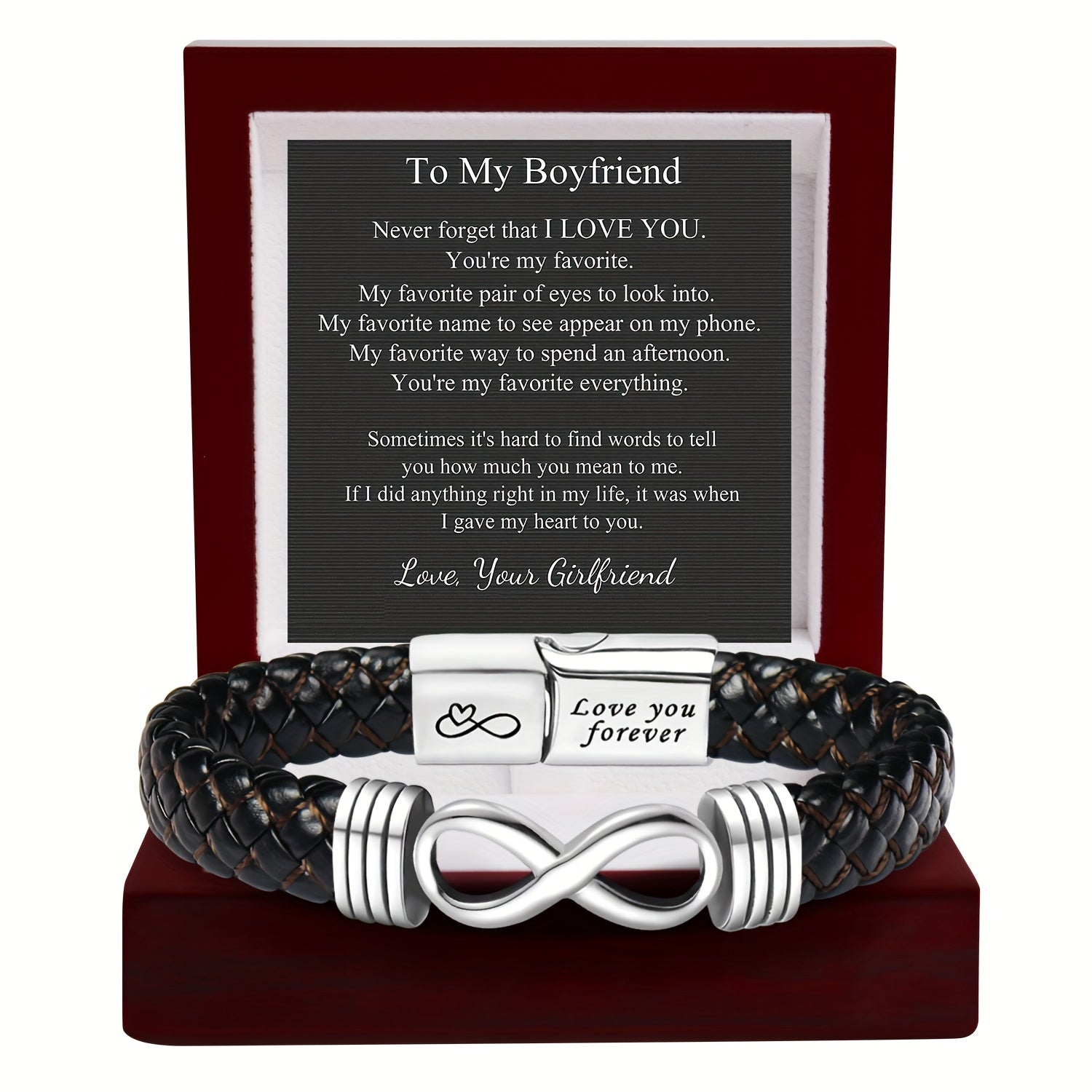 This Eternal Love faux leather bracelet with heart pendant is the perfect gift for your husband, boyfriend, dad, or son. It's ideal for Father's Day, birthdays, or graduations. Show your love with this romantic gift idea.