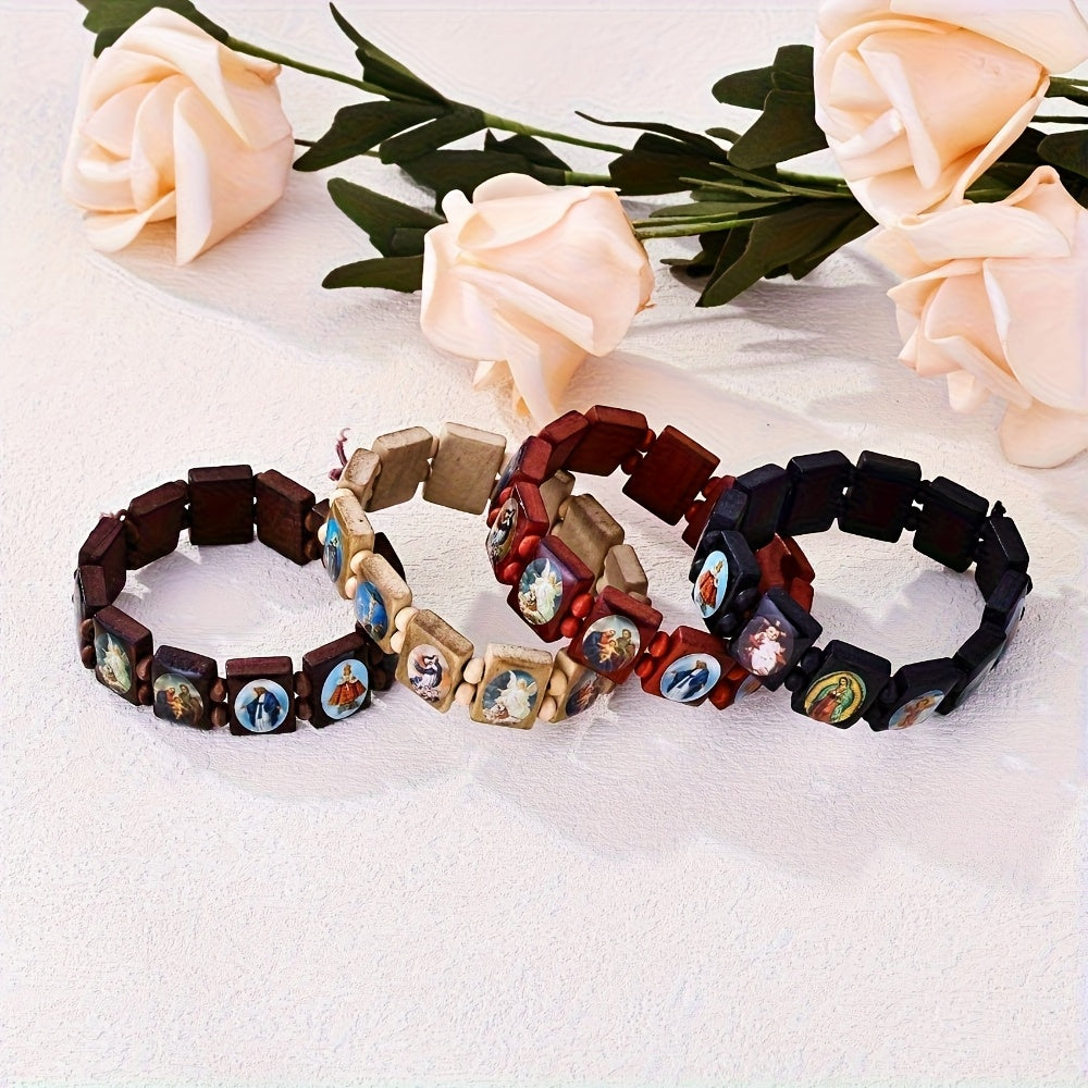 Celebrate Easter, Thanksgiving, Mother's Day with this gift set of 4 ethnic style wooden bracelets. Each bracelet features a braided wood design symbolizing Jesus faith and is perfect for both men and women.