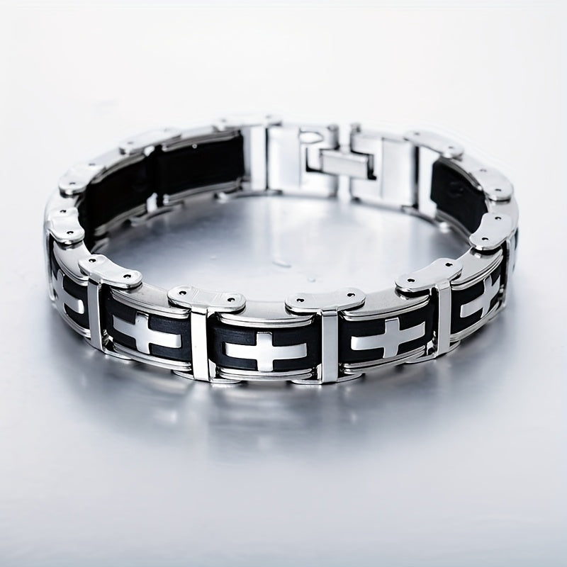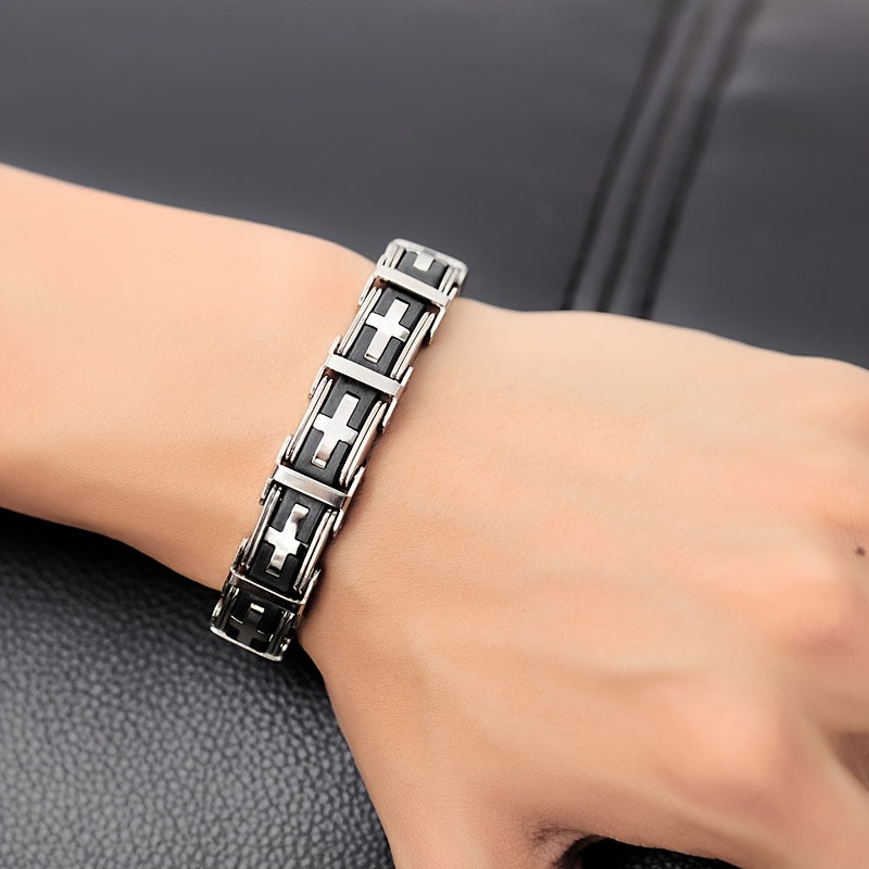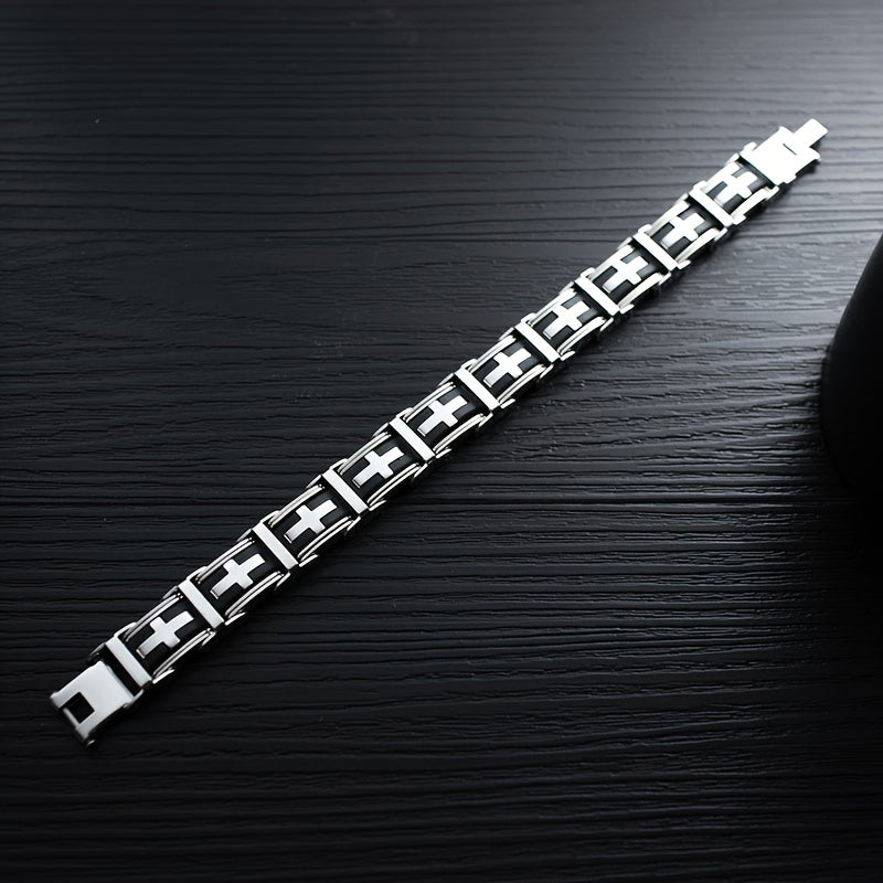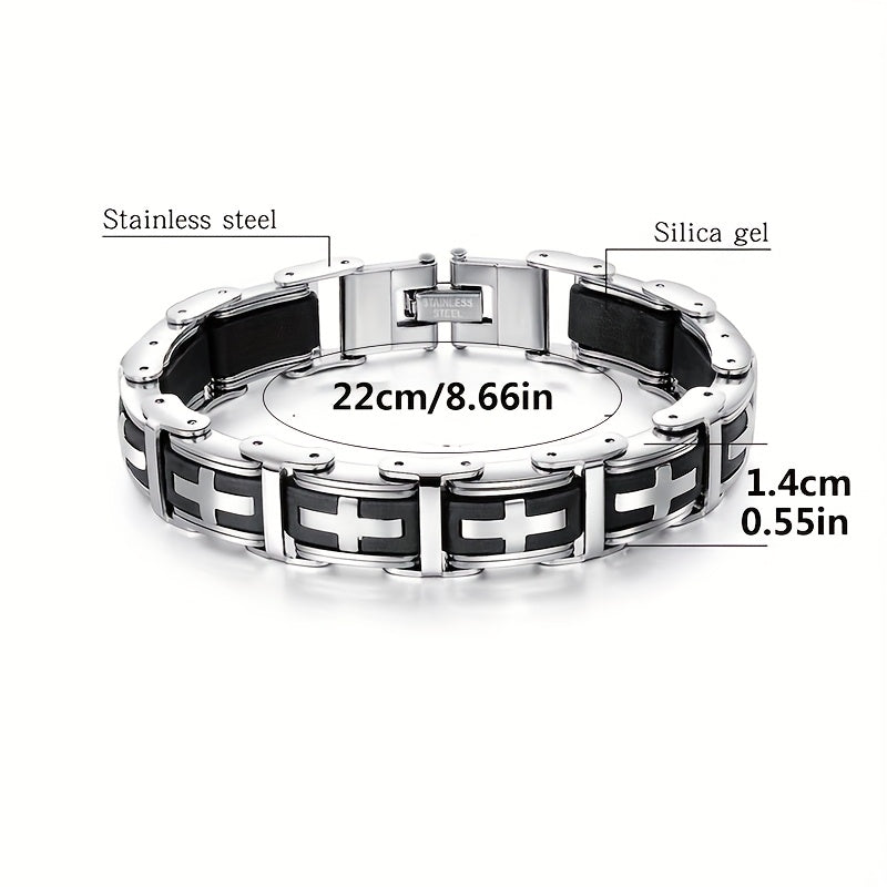Add a touch of punk style to your look with this classic 304 stainless steel and silicone bracelet. Perfect for men who love hip hop jewelry.
