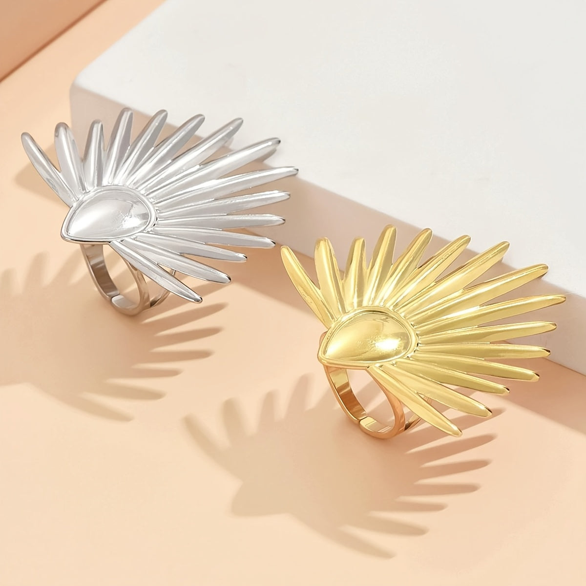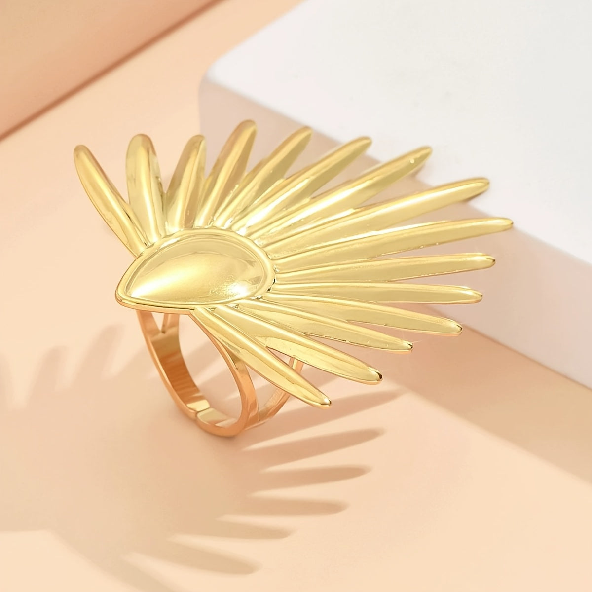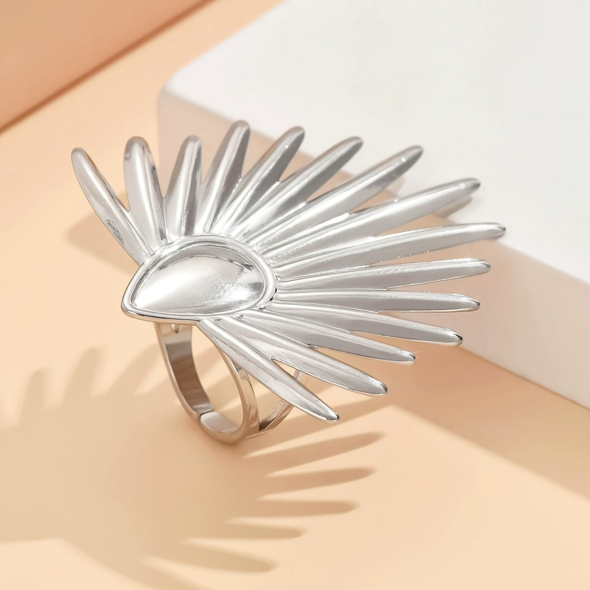 Exaggerated Fan Shape Stainless Steel Ring Retro Style Holiday Gift