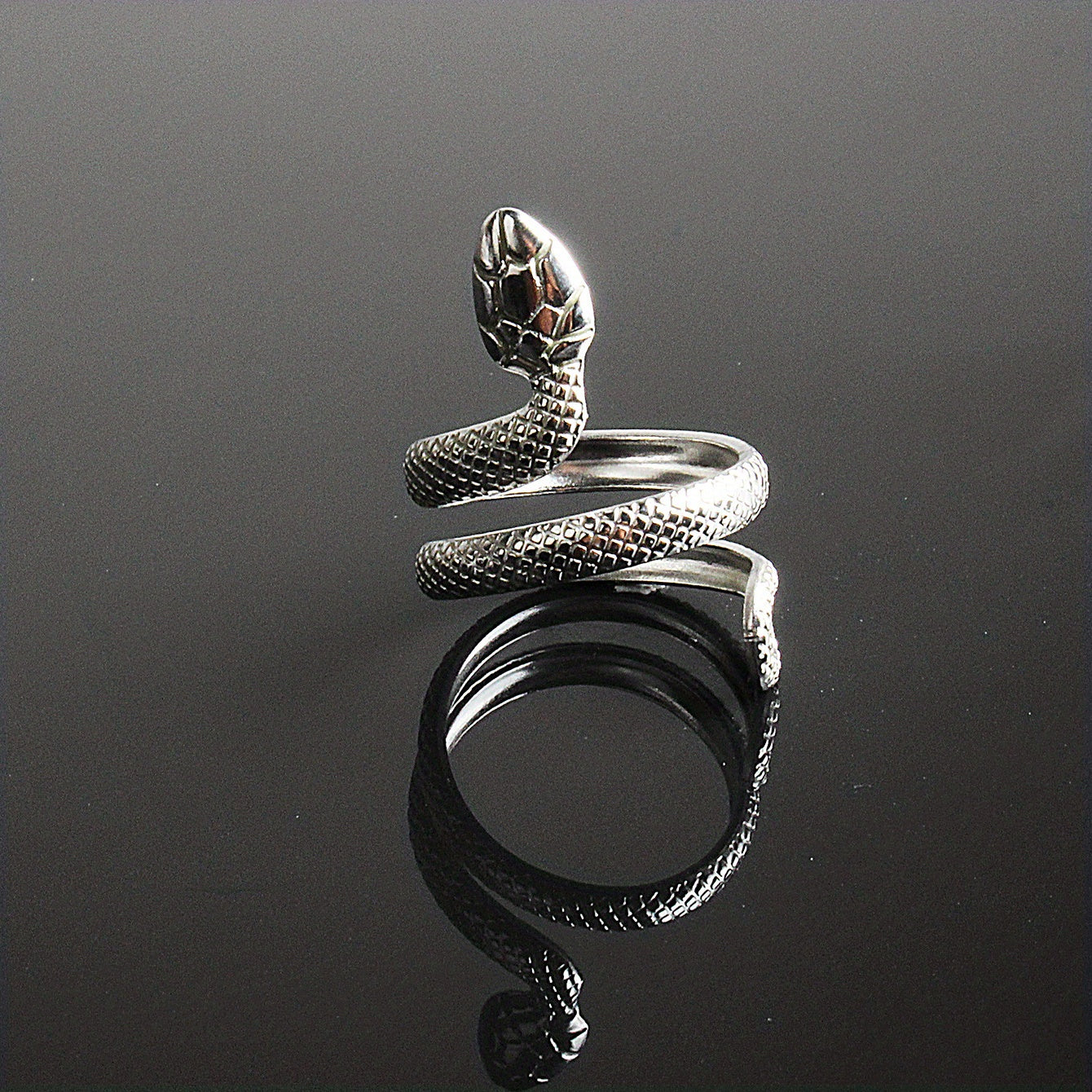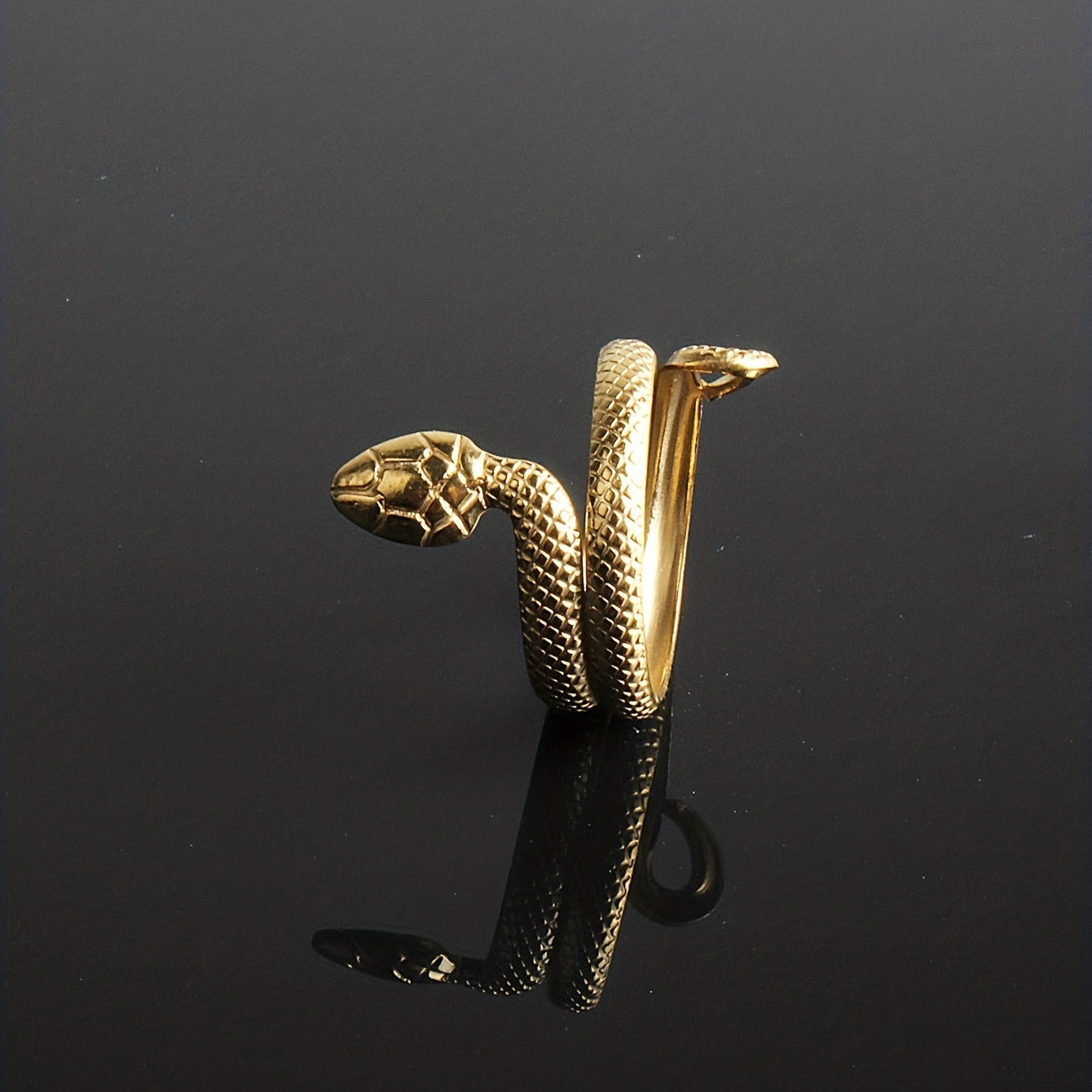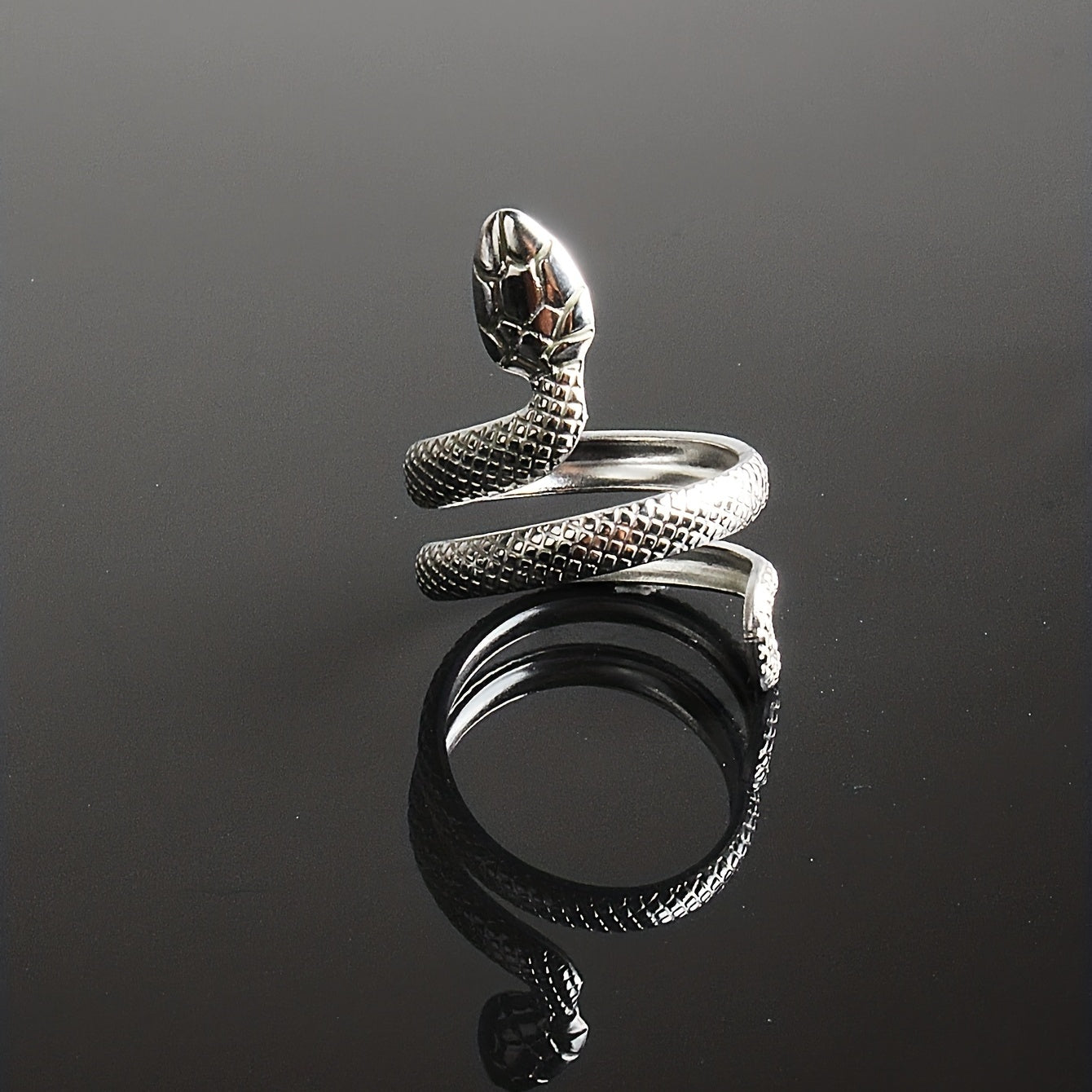 This unique ring features a snake-shaped design made of durable titanium steel. Ideal for both men and women with an adjustable opening.