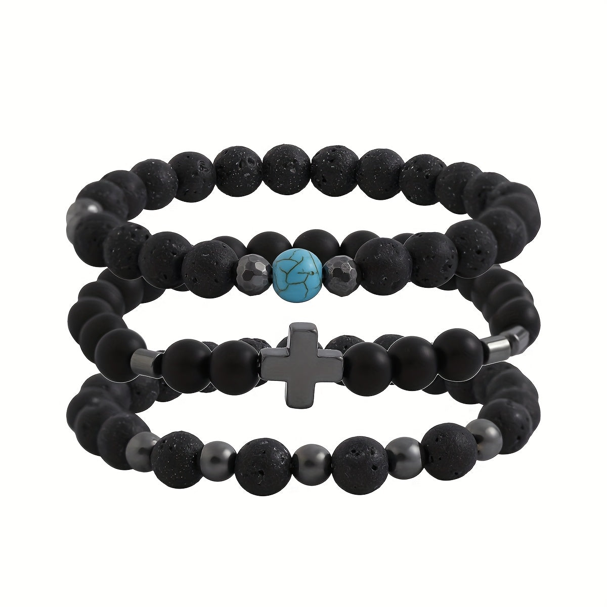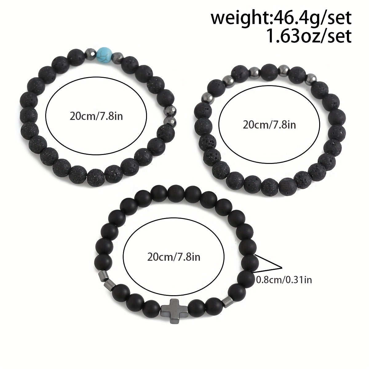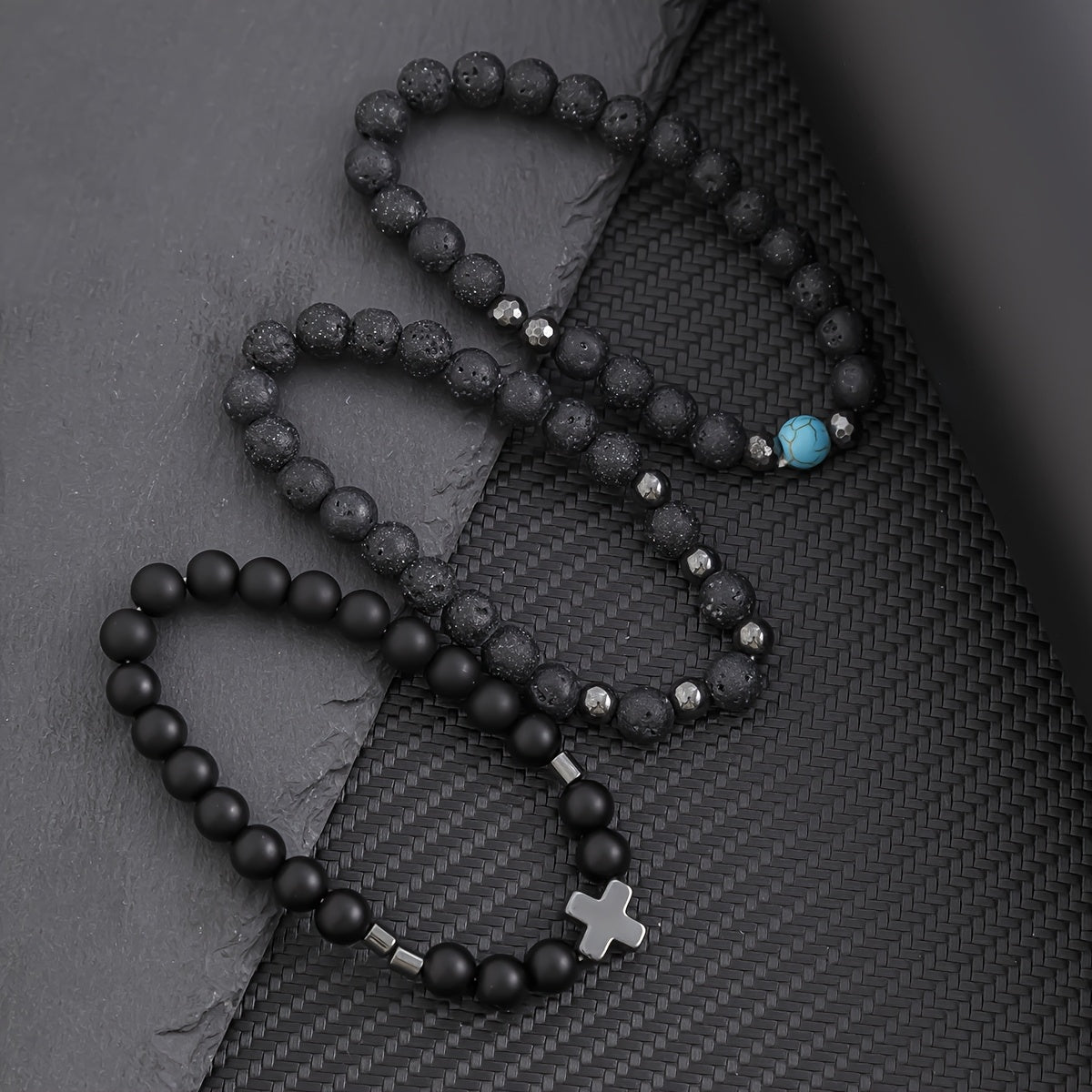 This 3-piece set includes stylish cross-border men's bracelets made of natural stone beads. Perfect for a hip-hop look and suitable for all outfits.