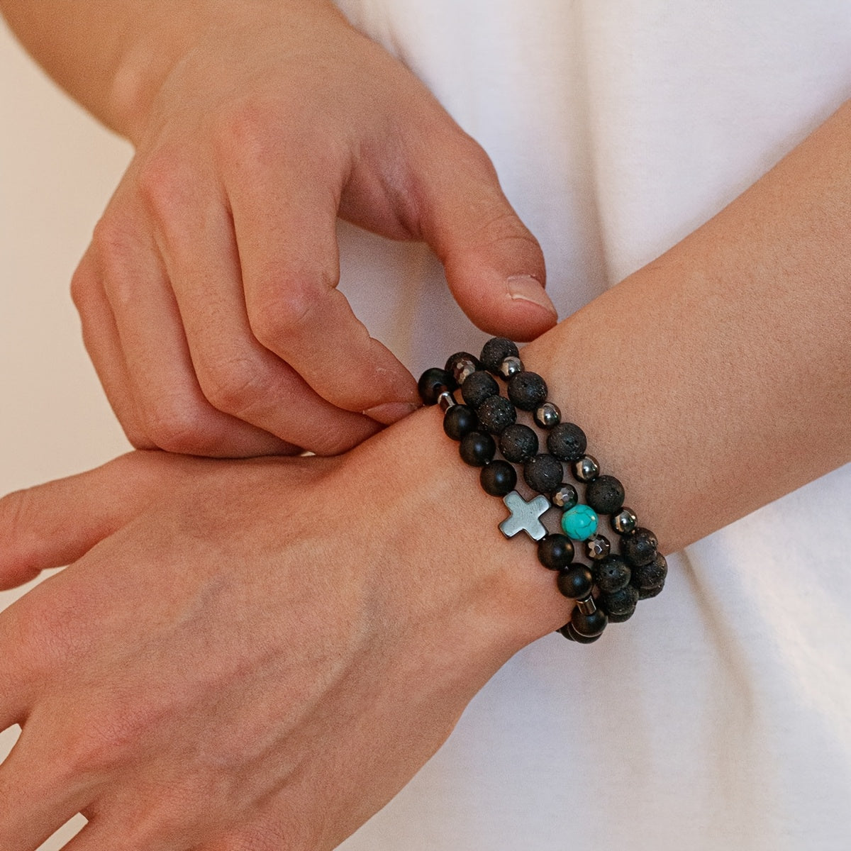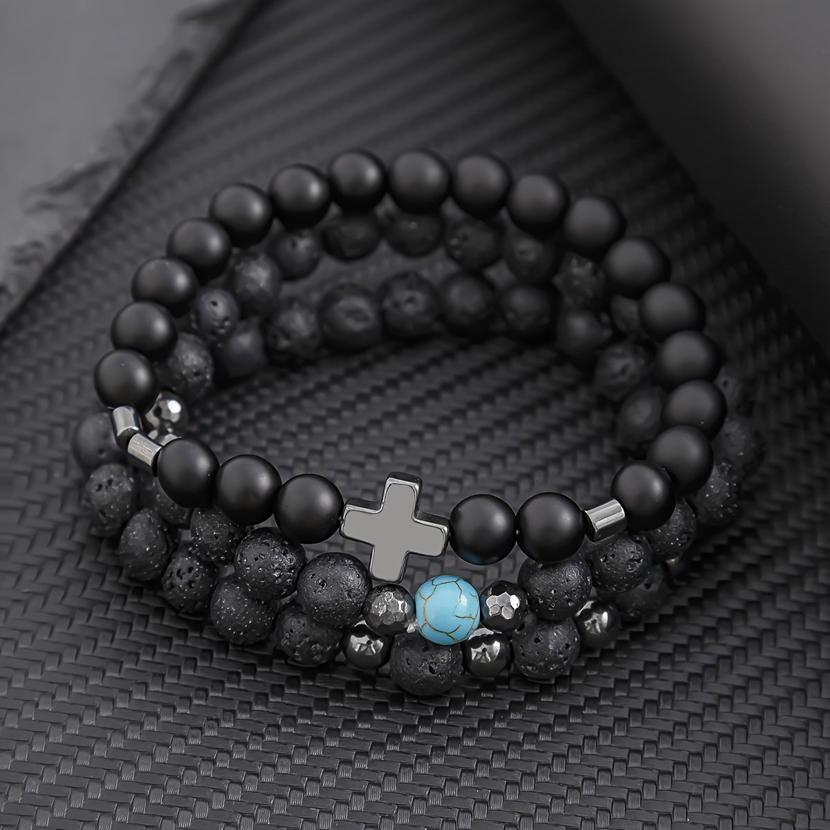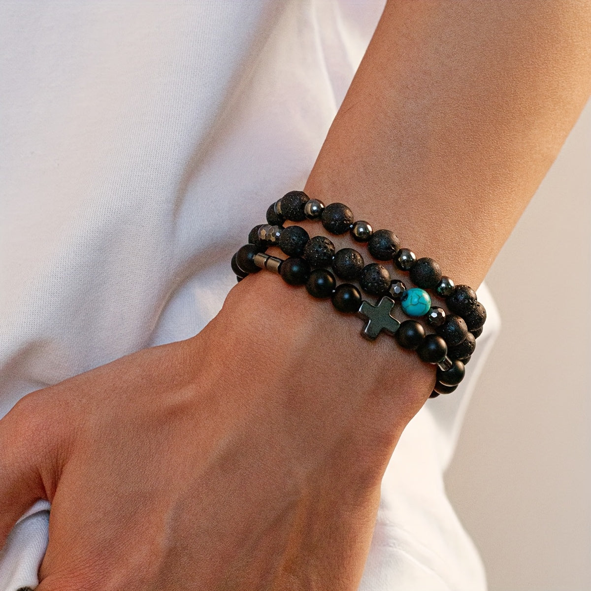 This 3-piece set includes stylish cross-border men's bracelets made of natural stone beads. Perfect for a hip-hop look and suitable for all outfits.