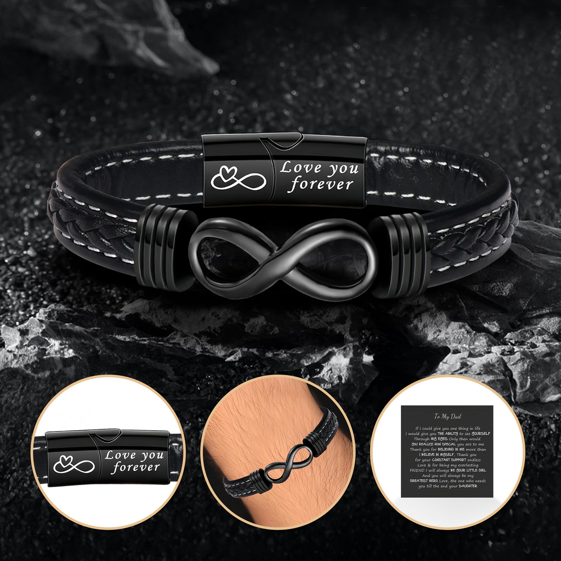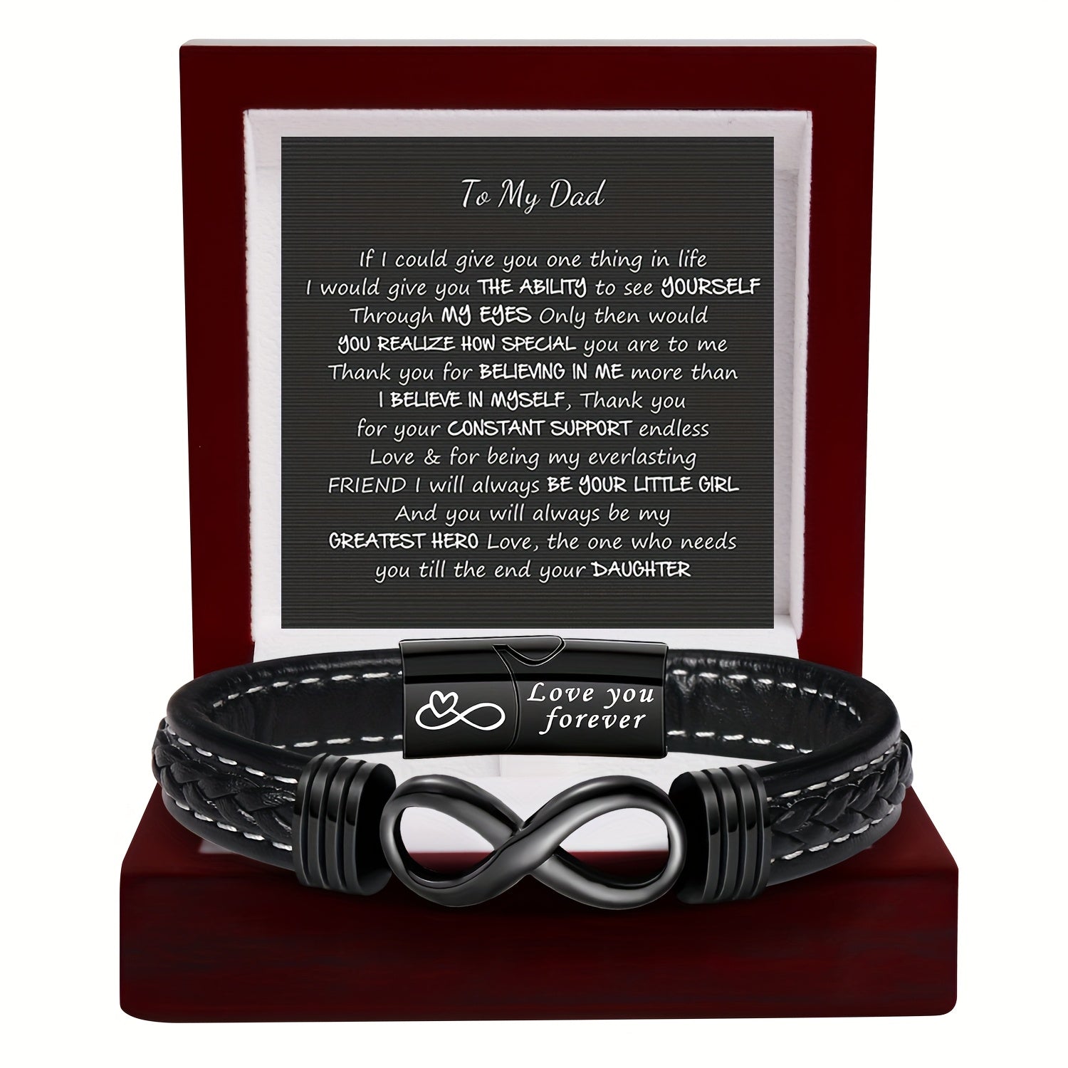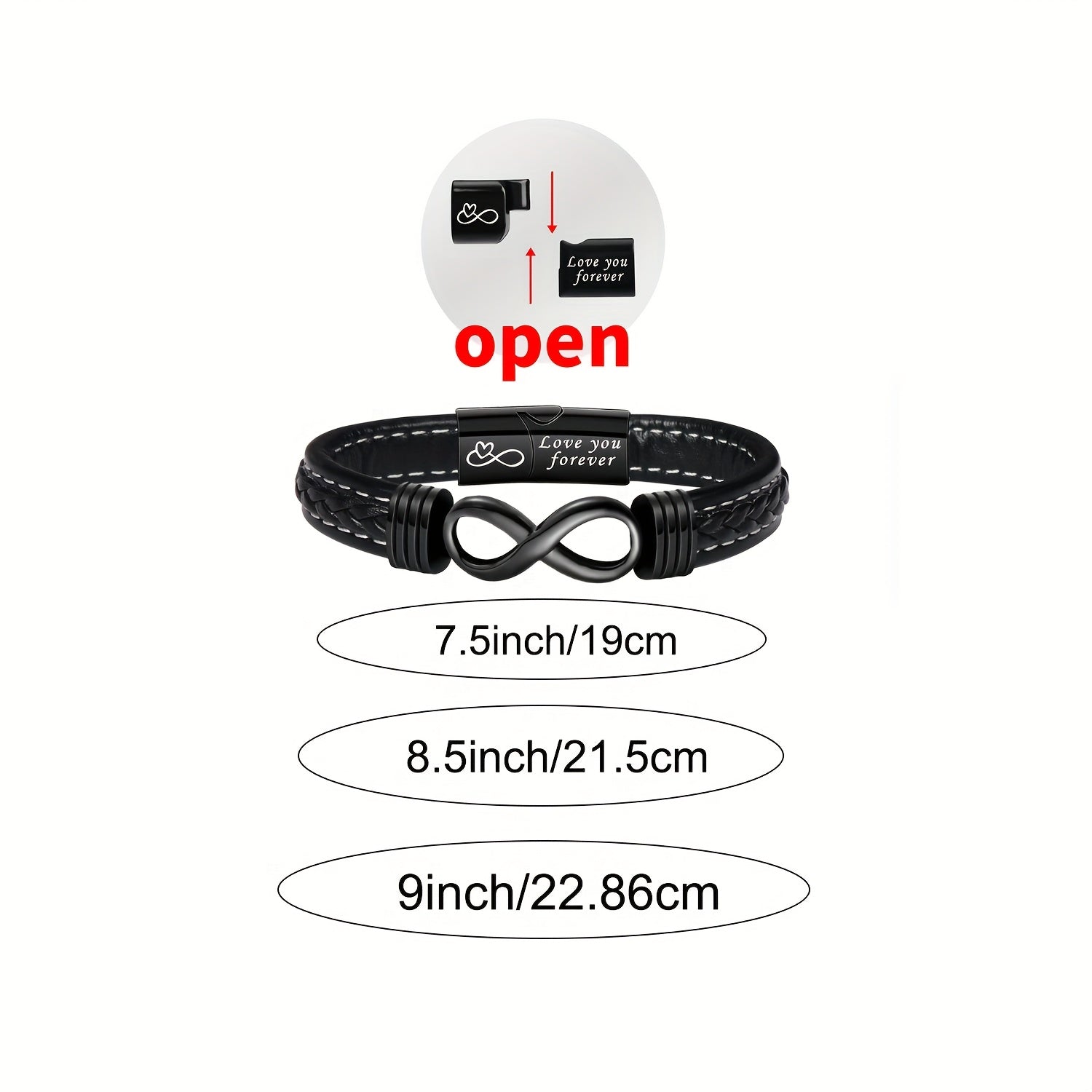 This faux leather bracelet is a stylish and meaningful gift for your loved one. Perfect for birthdays, Father's Day, graduations, or just to show appreciation.