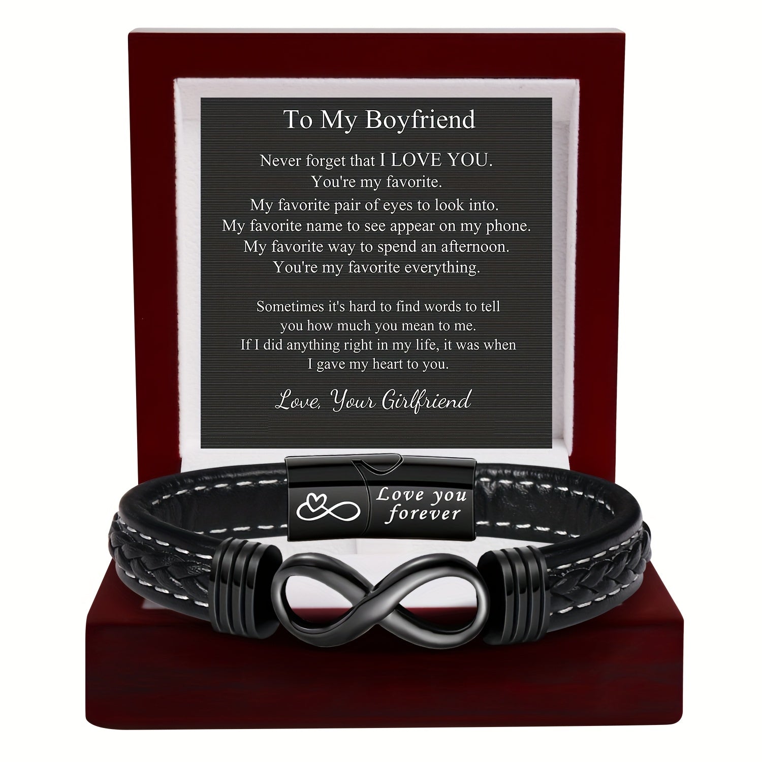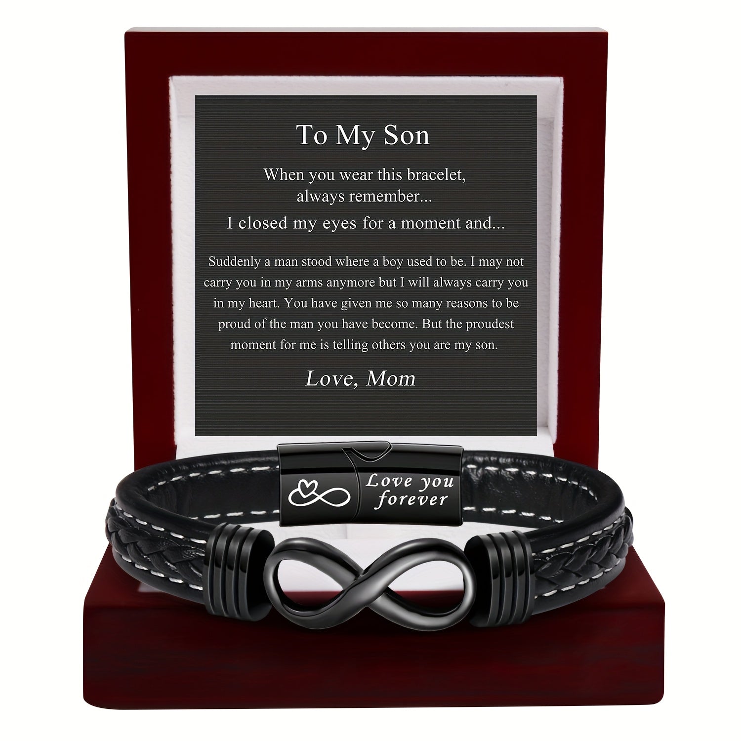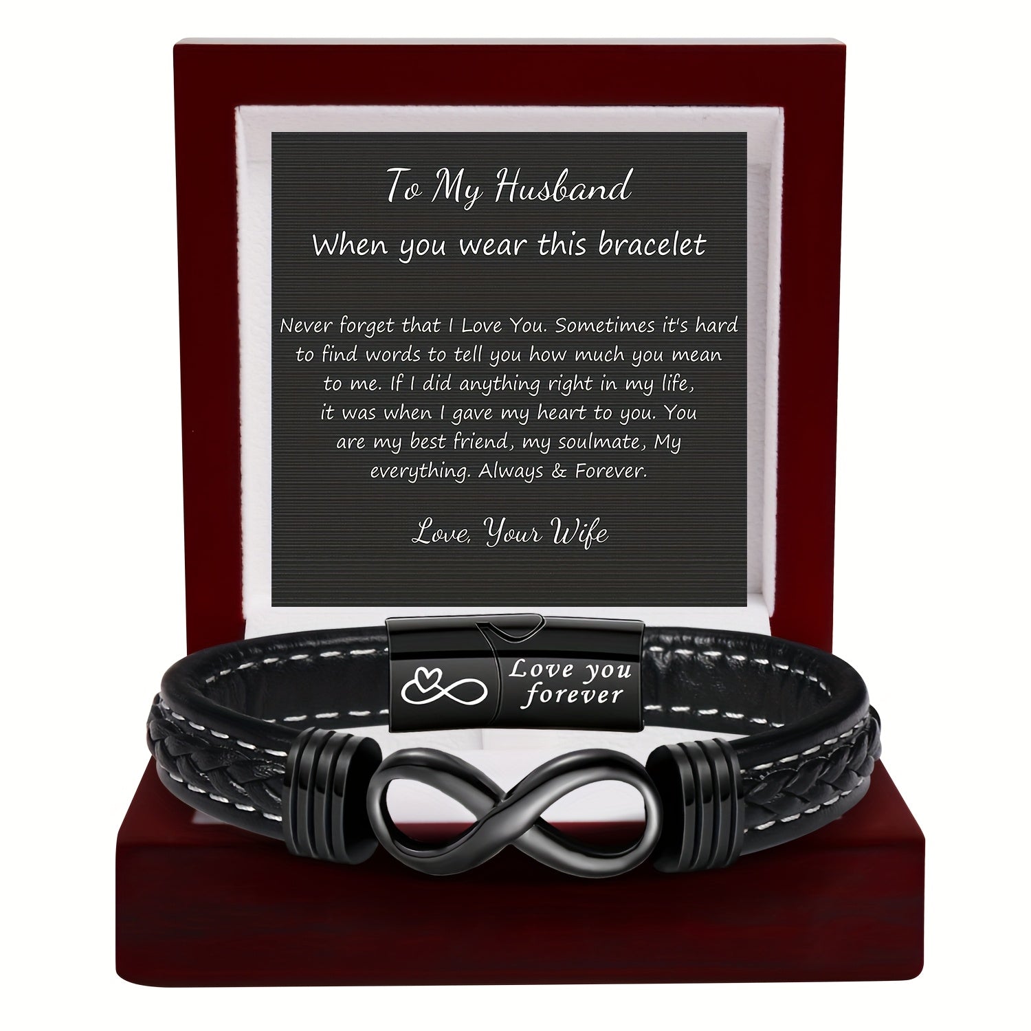 This faux leather bracelet is a stylish and meaningful gift for your loved one. Perfect for birthdays, Father's Day, graduations, or just to show appreciation.