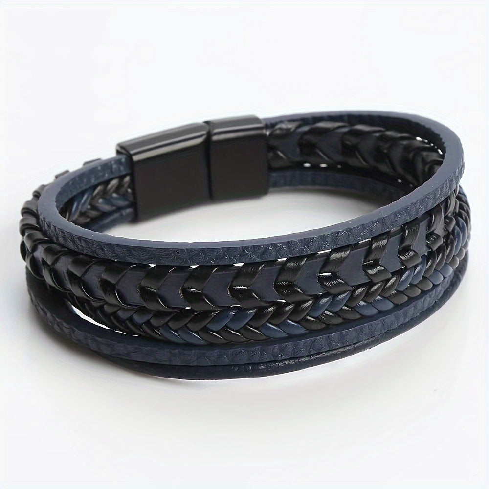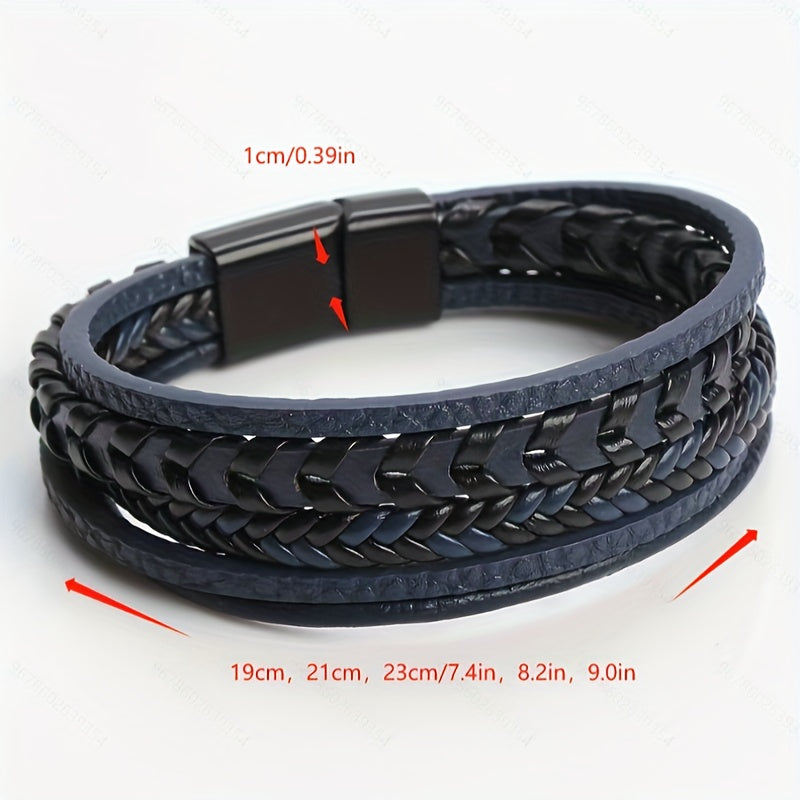 Add a touch of style to your everyday look with this men's leather bracelet. Crafted with a layer braided design and magnetic buckle, this PU leather bracelet is a fashionable accessory.