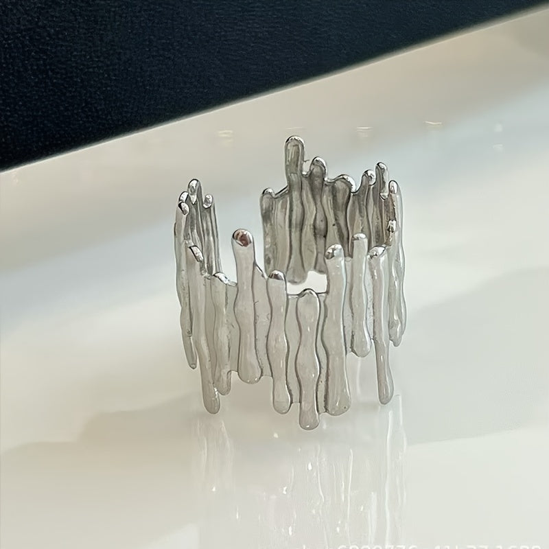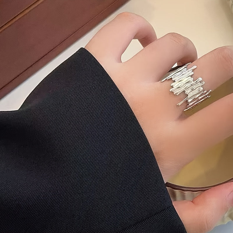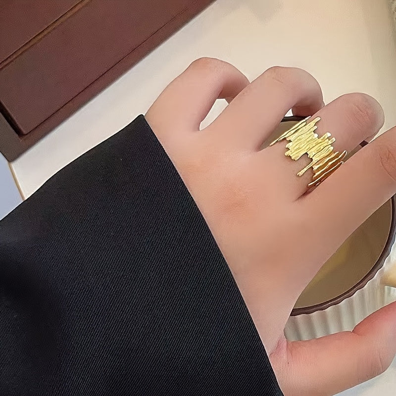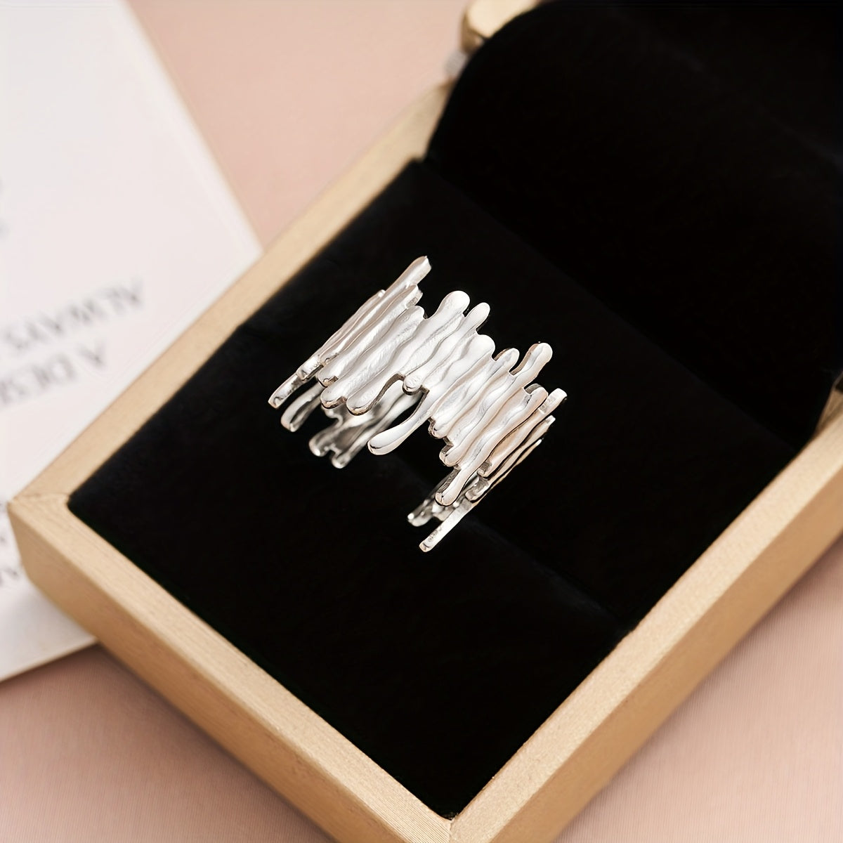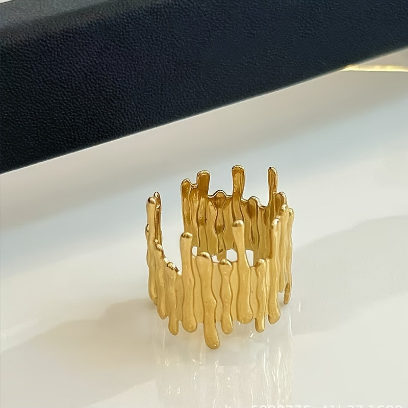This minimalist 201 stainless steel ring features a unique geometric design. Perfect as a matching band for couples. Durable unplated metal jewelry for men and women.