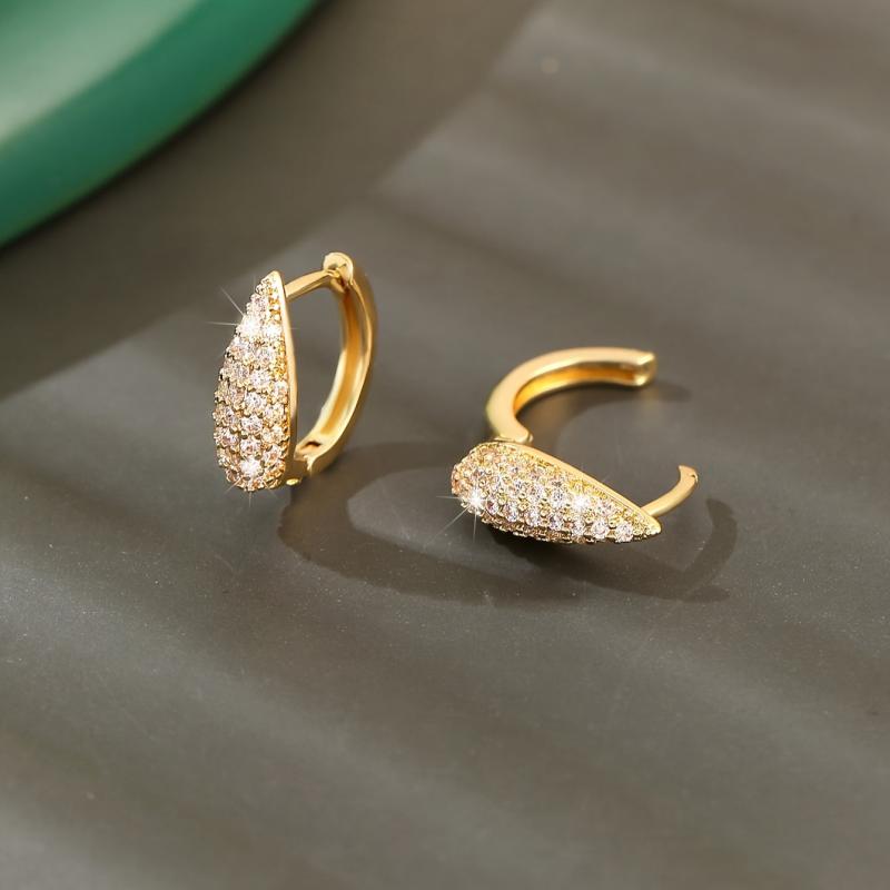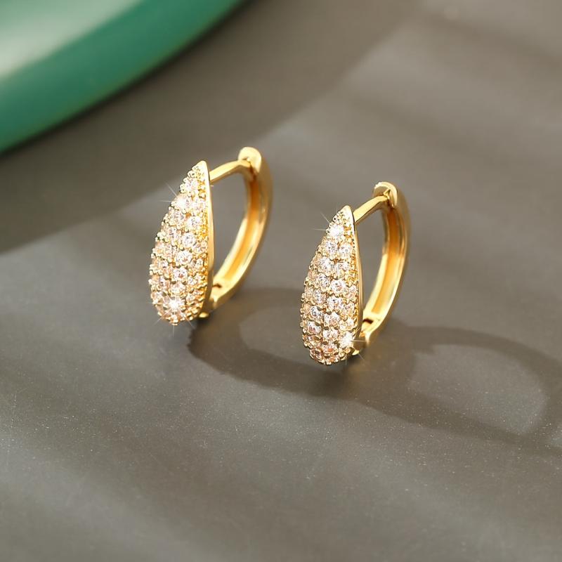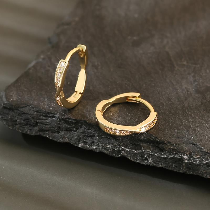 These elegant hoop earrings are made of golden copper with a sparkling zirconia detail and a letter D charm. They are nickel-free and make an ideal gift.