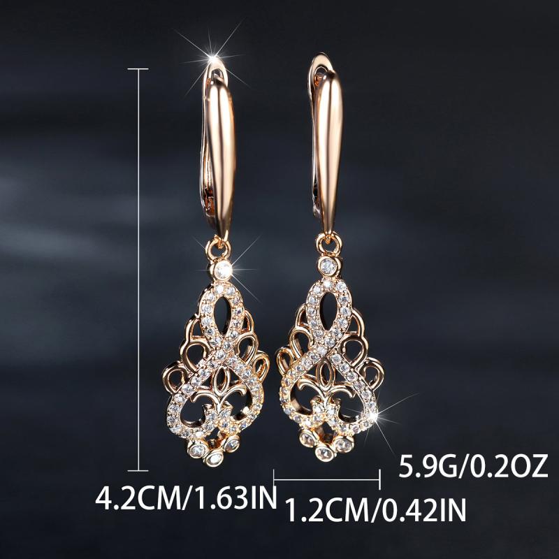 These elegant dangle earrings are perfect for weddings, parties, and everyday wear. The golden color and stunning CZ stones add a touch of sophistication to any outfit.