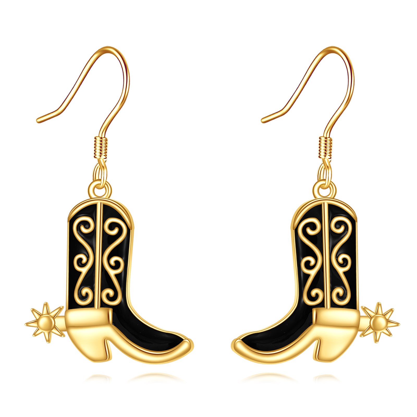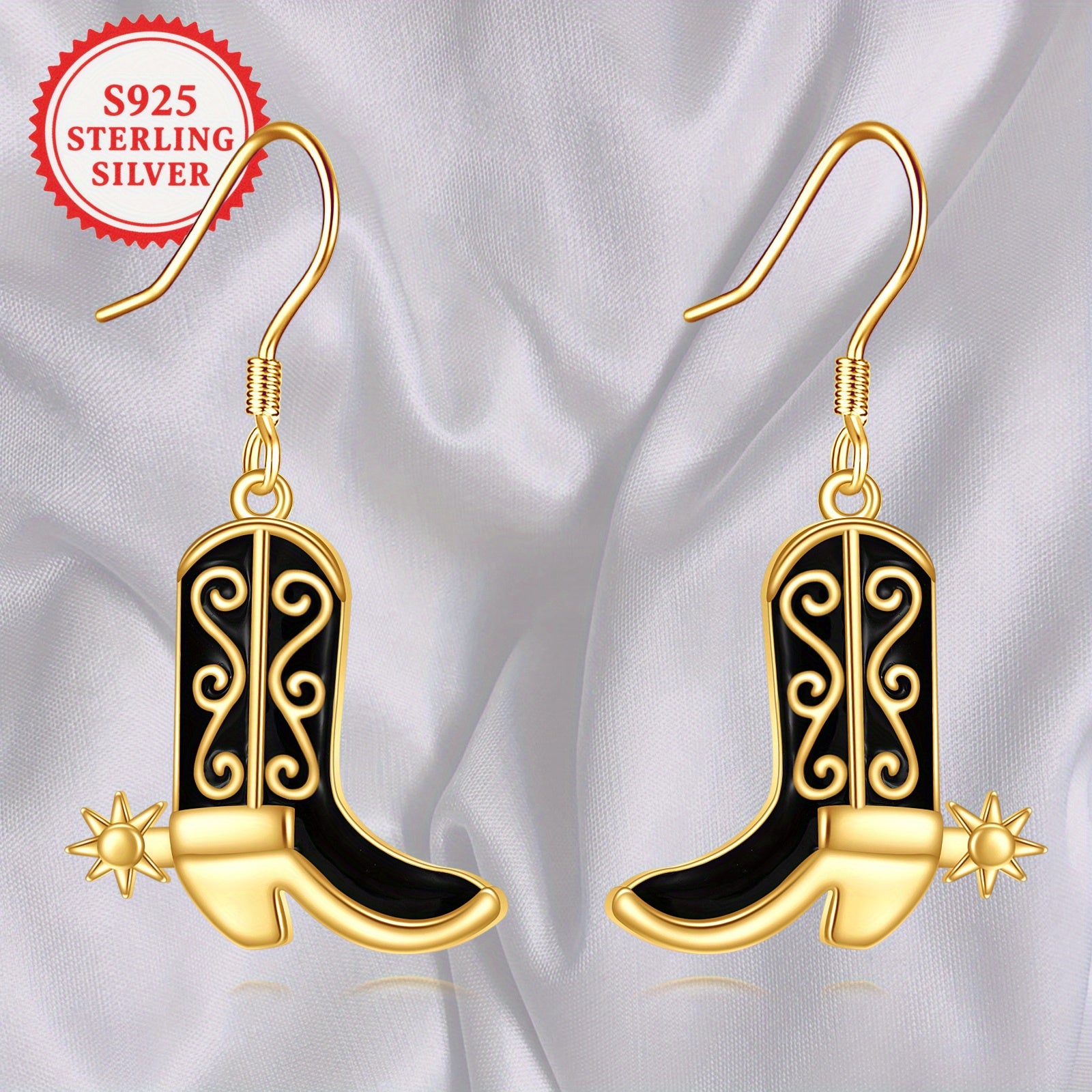 These sterling silver cowboy dangle drop earrings are perfect for those who love western style. The golden plated boots add a touch of elegance to your cowgirl look.