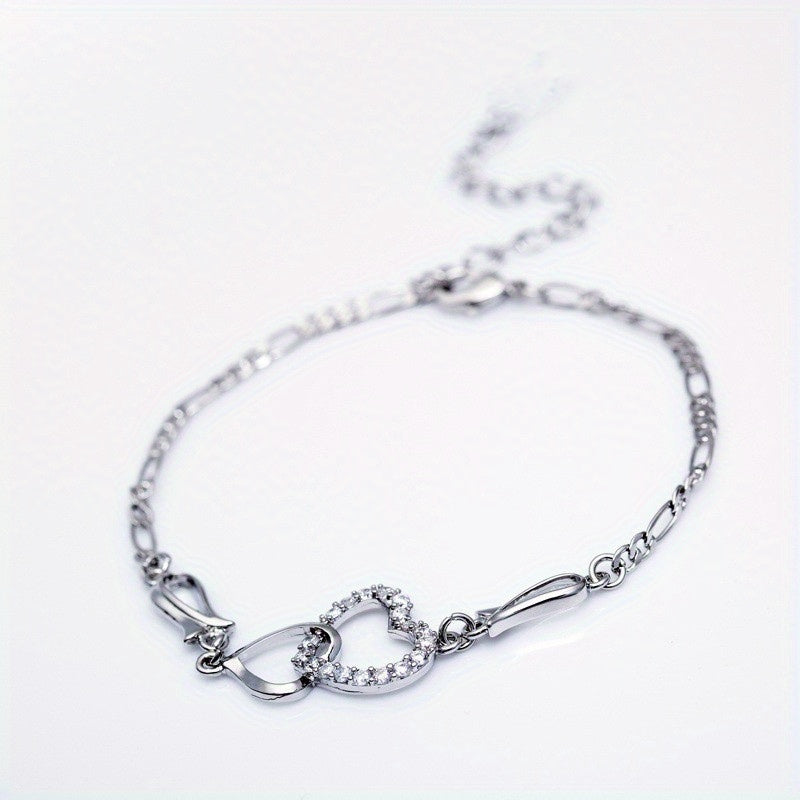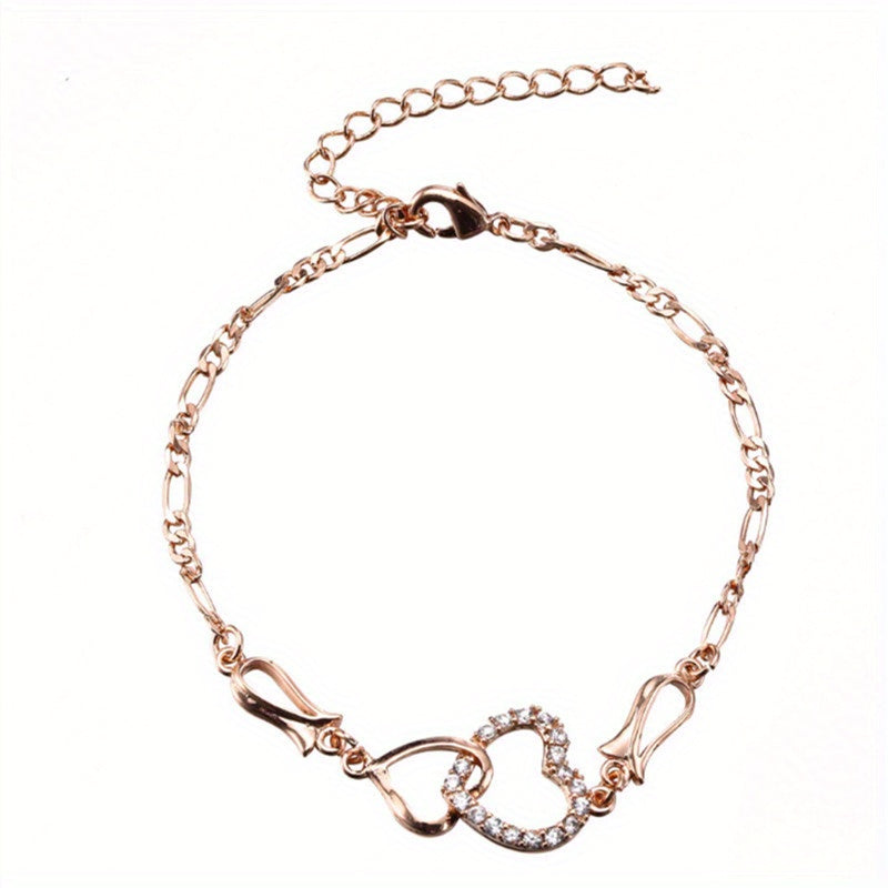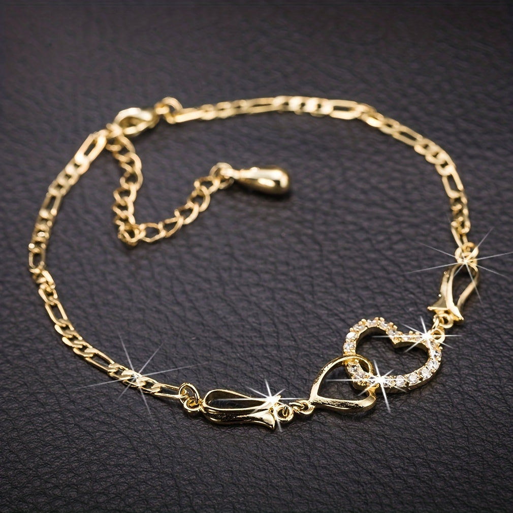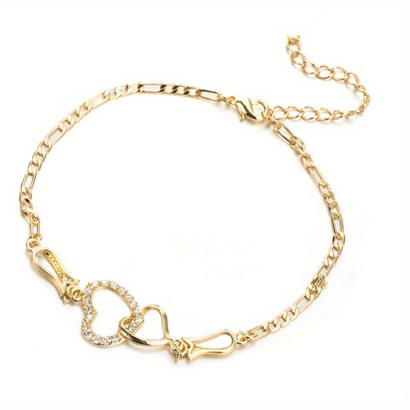 Beautiful anklet featuring a hollow love heart chain design with inlaid rhinestones. Perfect for expressing your love and style.