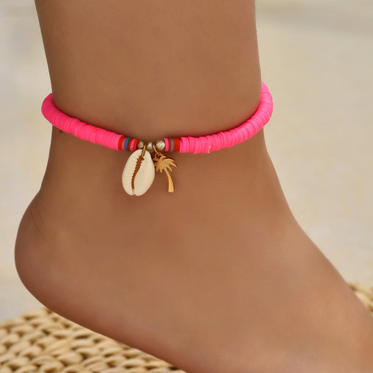 Add a touch of elegance to your outfit with this lady character anklet featuring a pottery scallop coconut pendant.