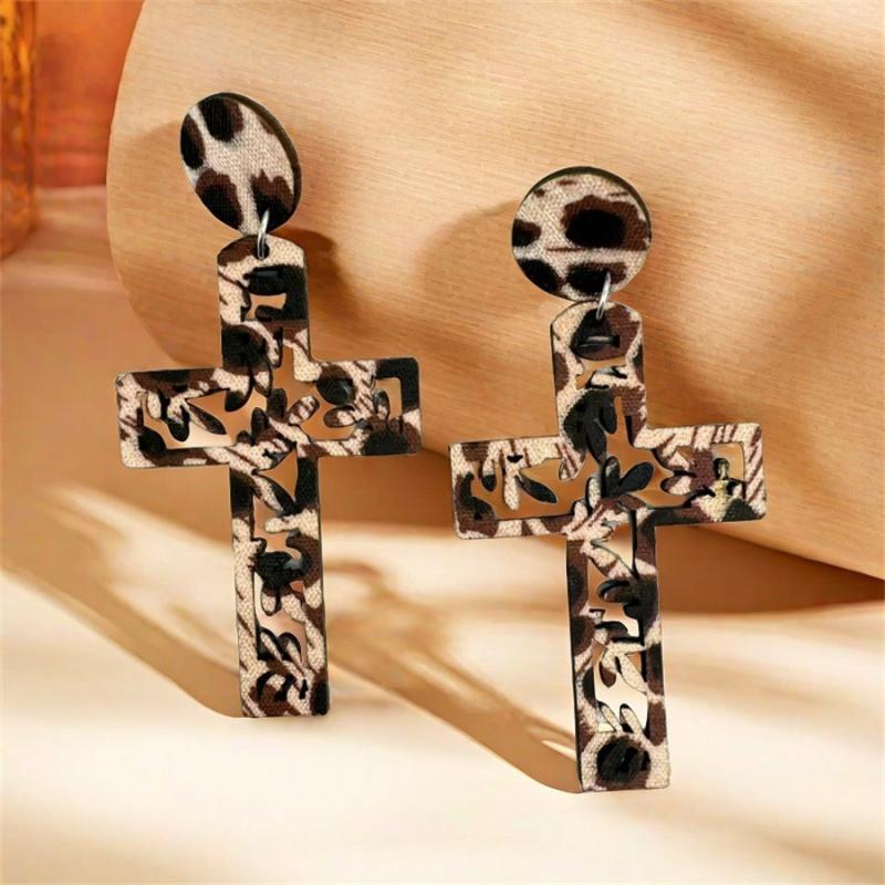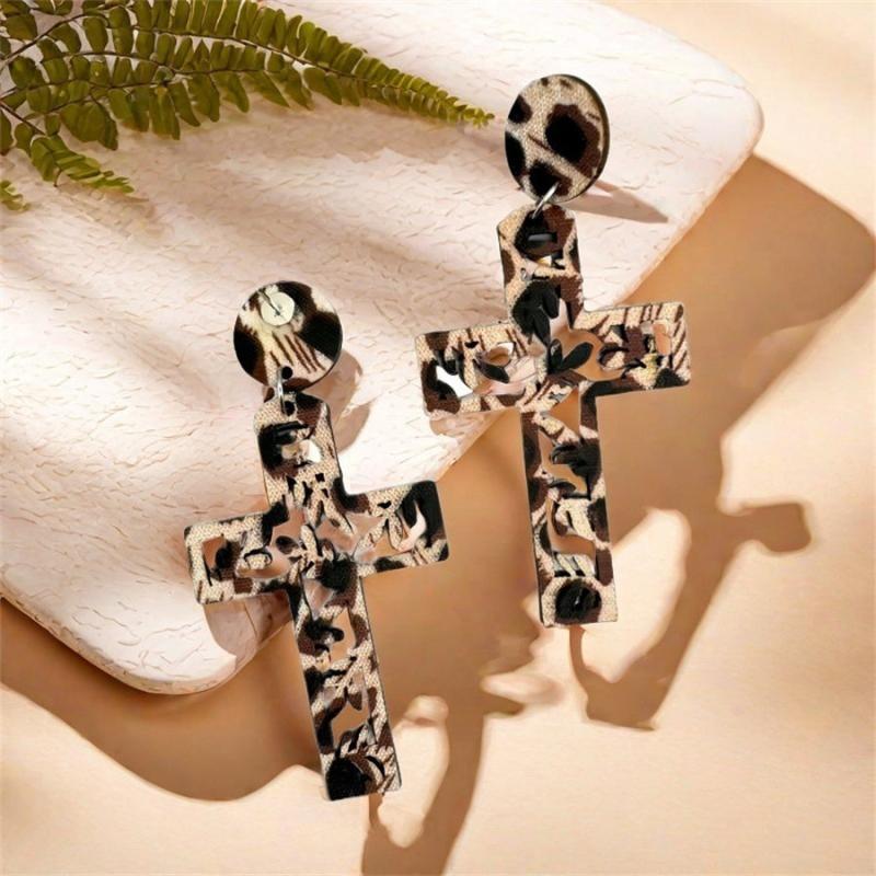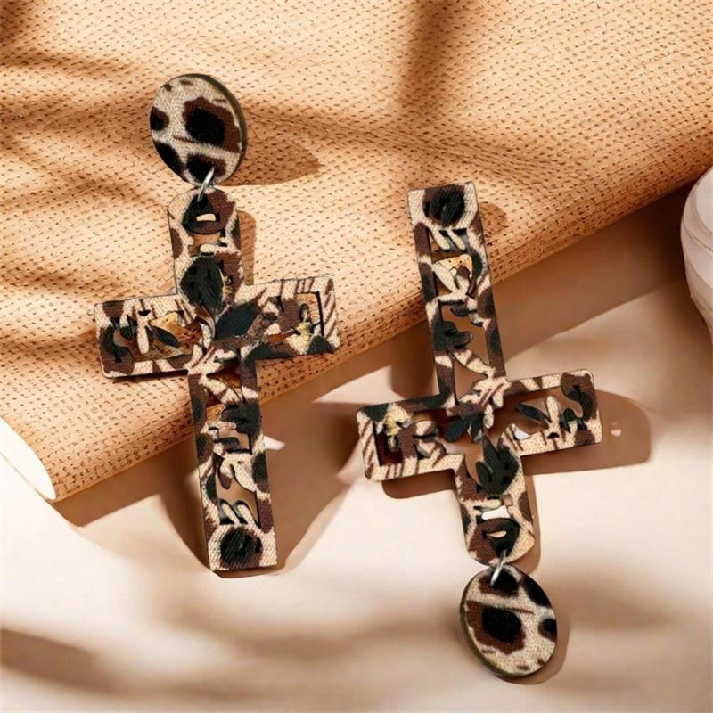 Make a statement with these bohemian leopard print wooden cross drop earrings. Perfect for spring and summer, they make a great gift for mothers and brides. These tribal-inspired accessories add a unique touch to any outfit.