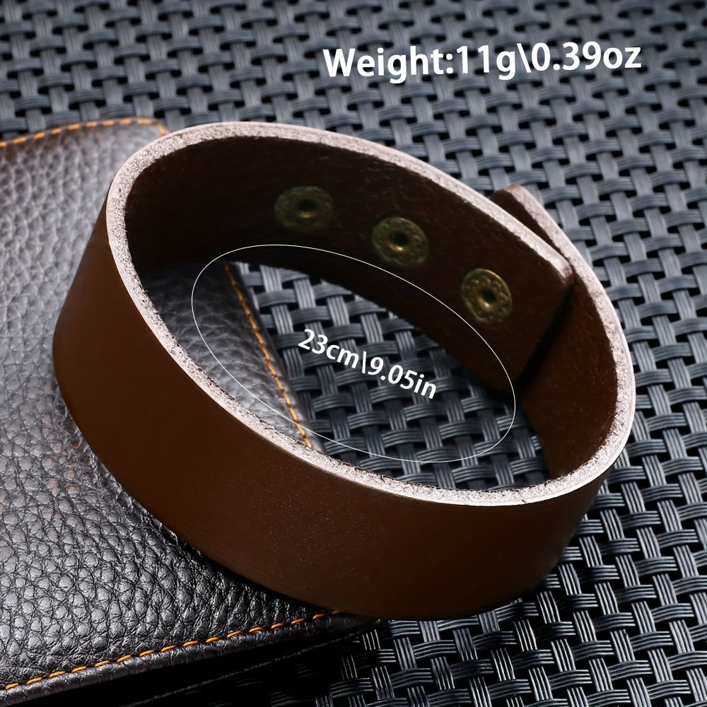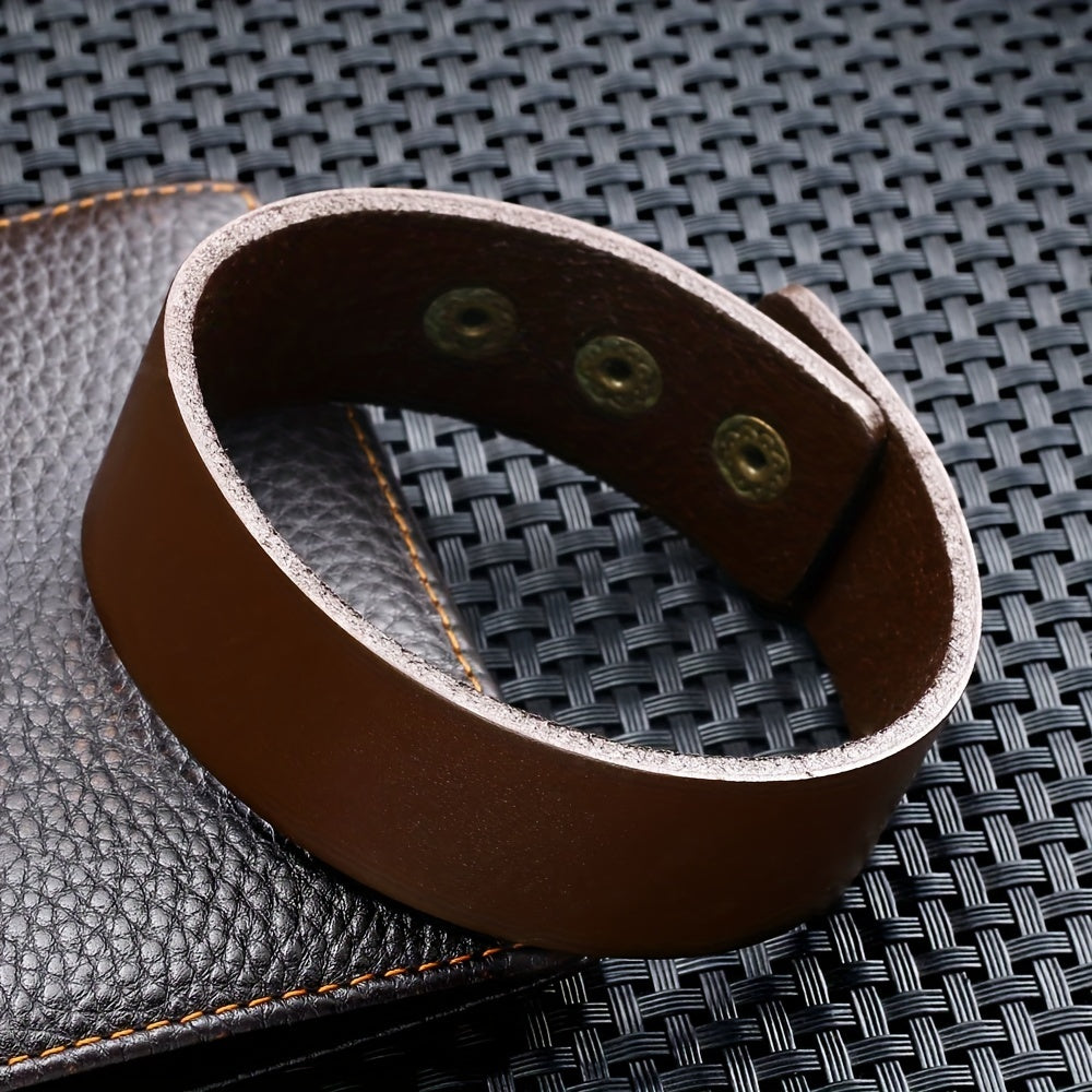 Enhance your casual attire with this sleek faux leather bracelet designed for style and comfort. The adjustable feature ensures a perfect fit for any wrist size.