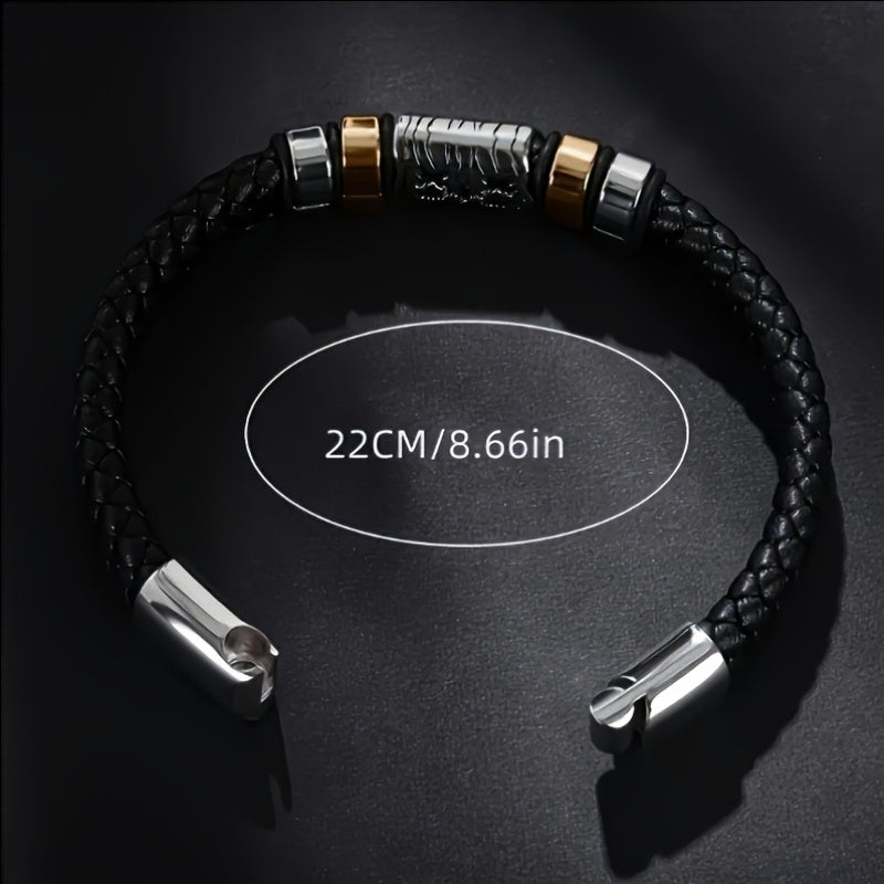 Add a touch of style to your casual look with this faux leather wristband. The braided design adds a trendy touch to your outfit.