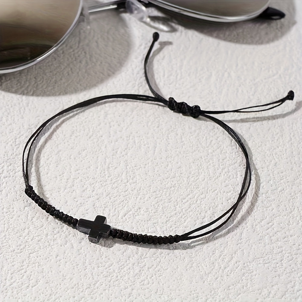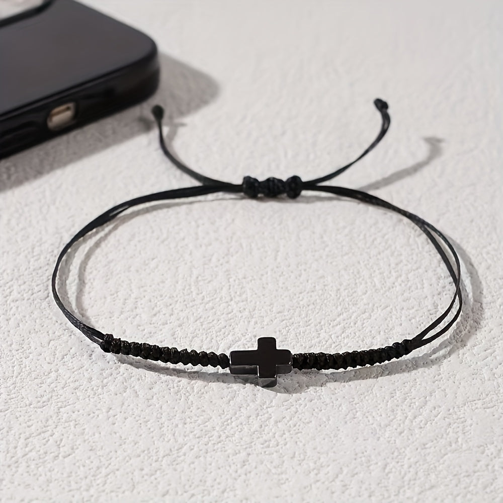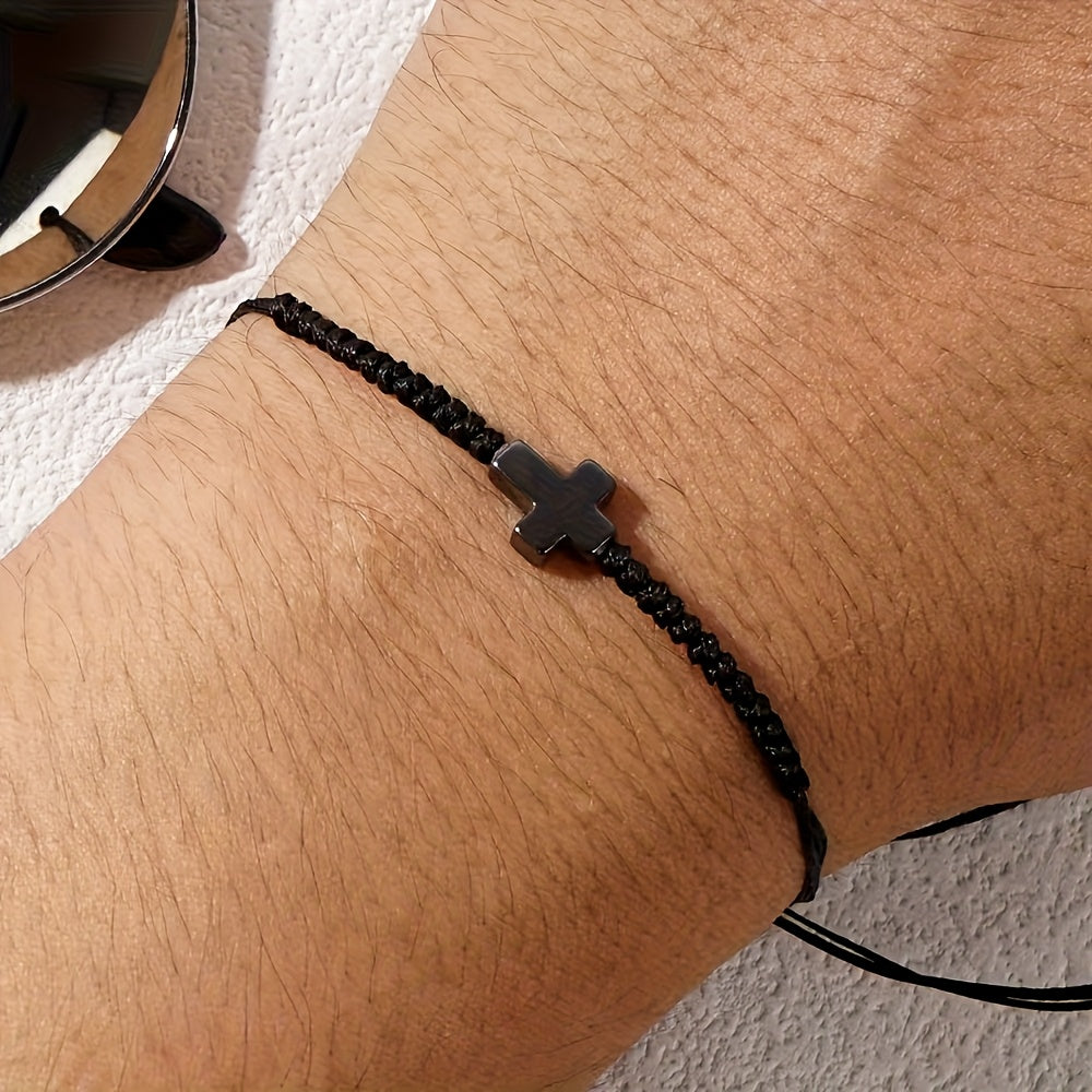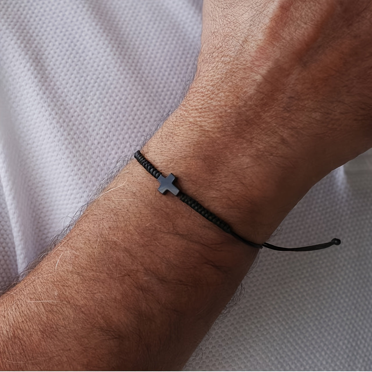 This stylish men's braided rope bracelet features a cross symbol for protection. Made of high-quality materials, it is a perfect jewelry accessory for everyday wear.