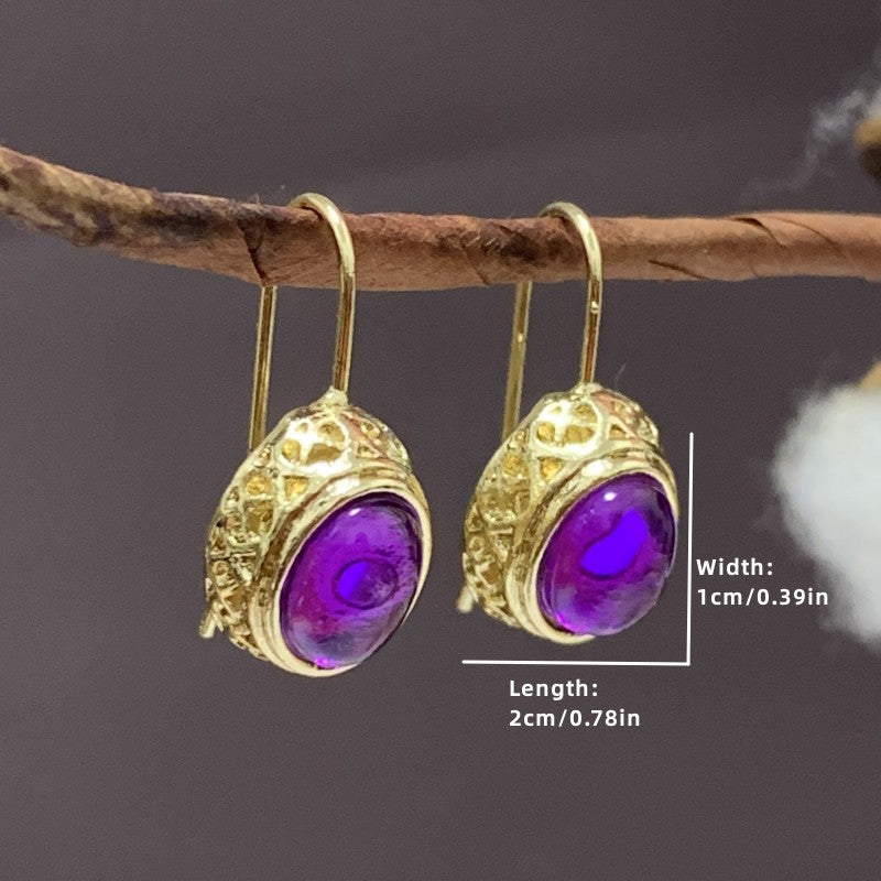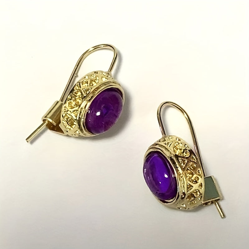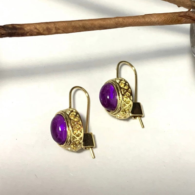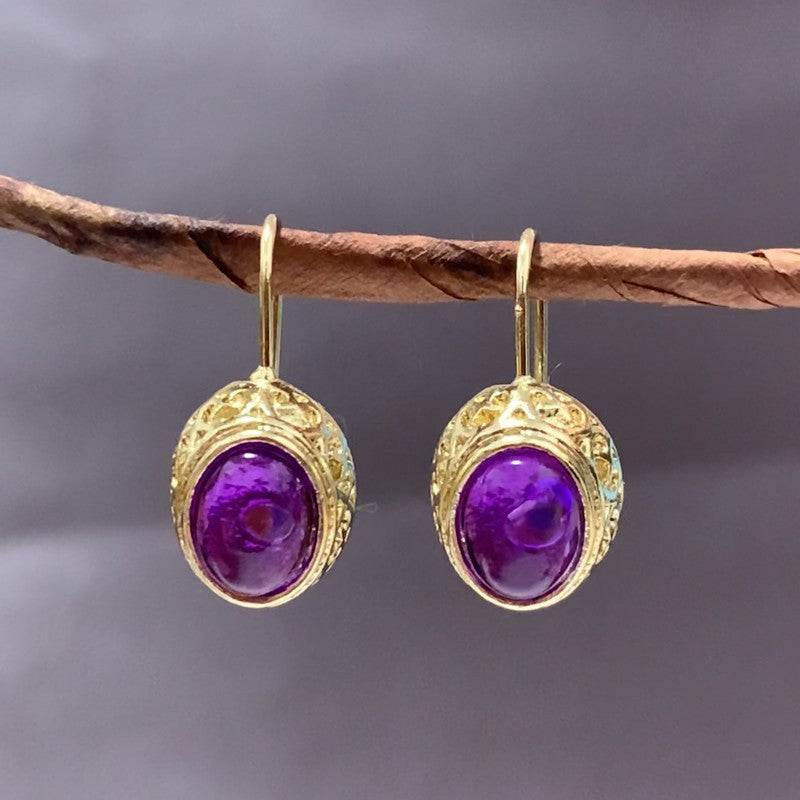 Enhance your style with these stunning golden amethyst earrings. Perfect for weddings and special occasions.