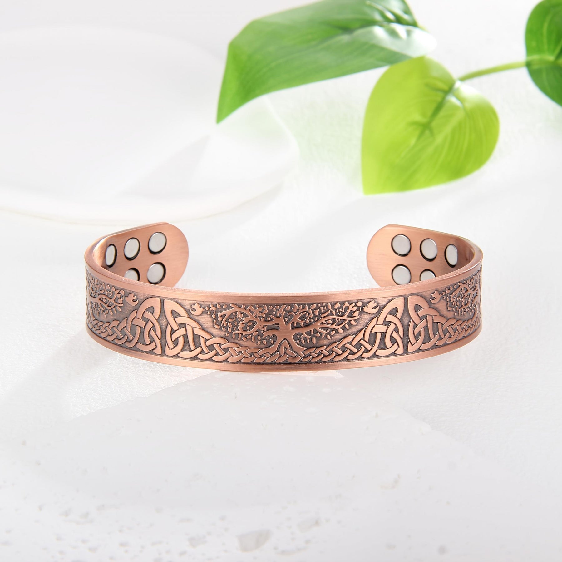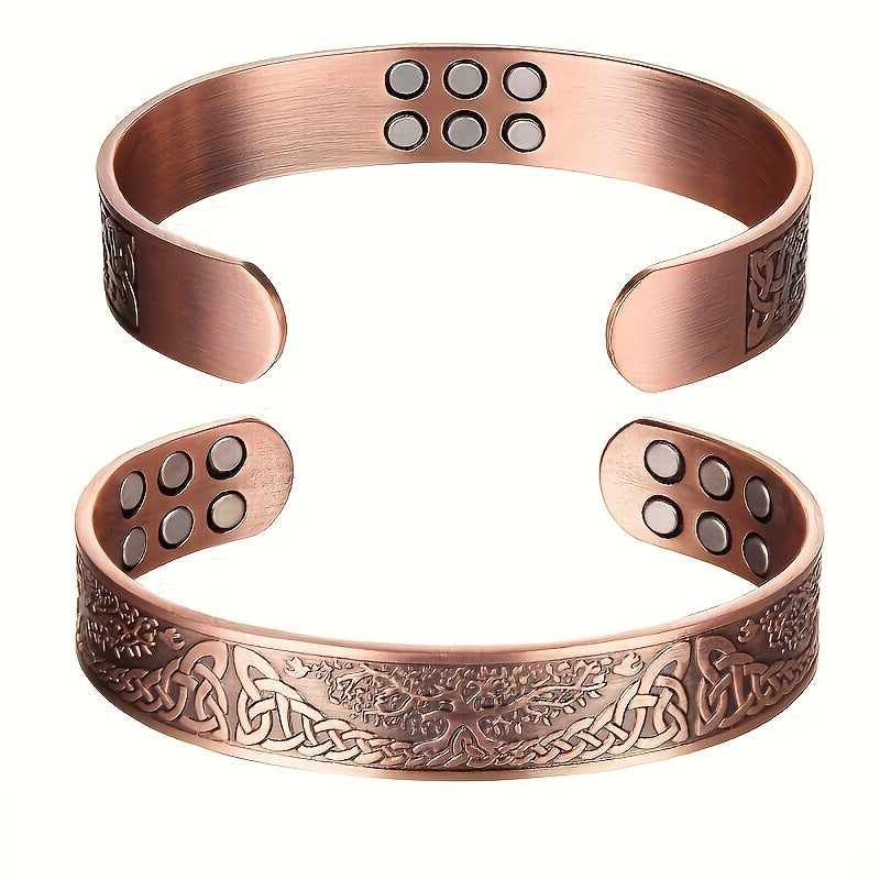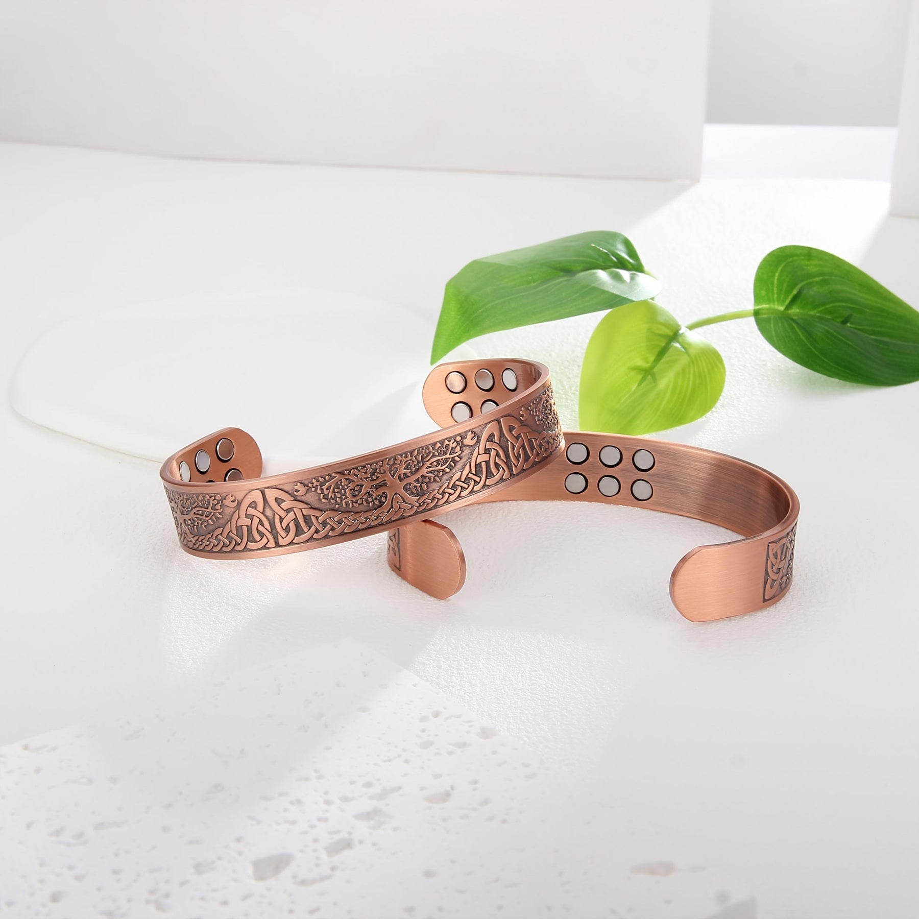 Elevate your style with this intricately designed copper bracelet featuring smooth accents. It's the ideal everyday accessory and a thoughtful gift for someone special.