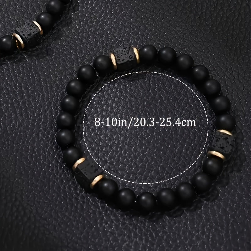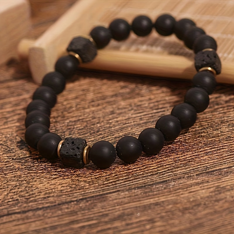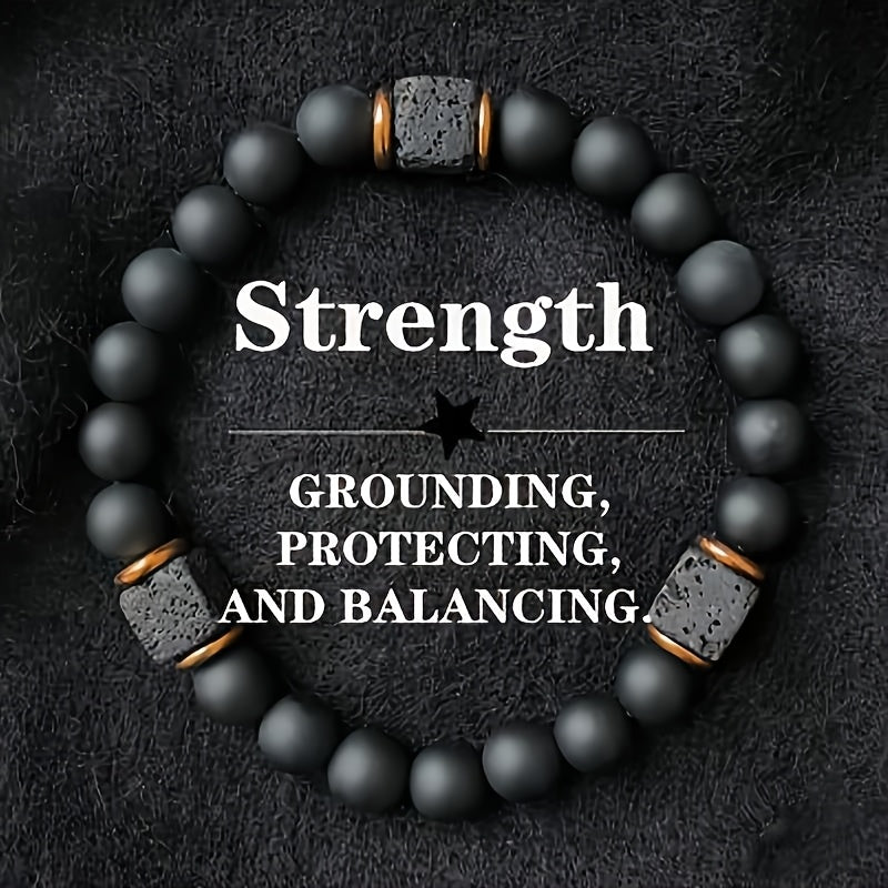 This elastic bracelet features 8mm matte stone and bead design, ideal for providing grounding and protection. Perfect gift for son, dad, boyfriend, co-worker.