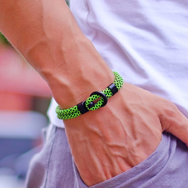 This adjustable double layer rope bracelet in neon green is perfect for casual and party wear. Ideal as a holiday gift for boyfriend, dad or teacher.