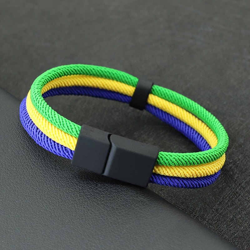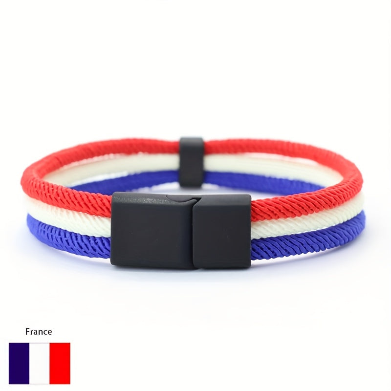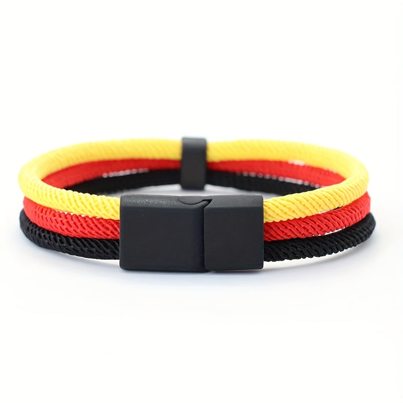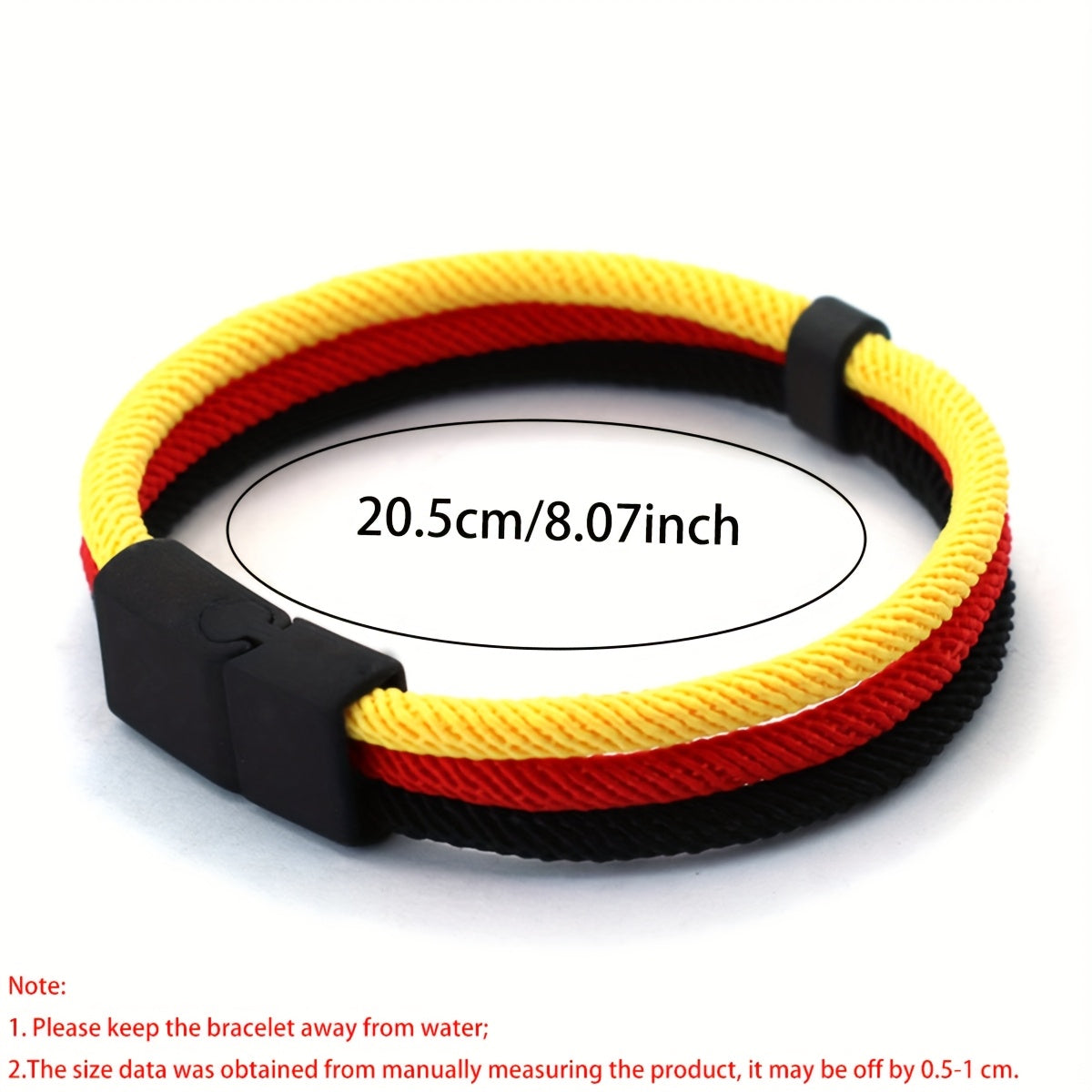 Show your patriotism with this vibrant red, yellow, and striped bracelet. Made of 4mm nylon cord with an adjustable openable buckle, it is perfect for casual attire and festive occasions.