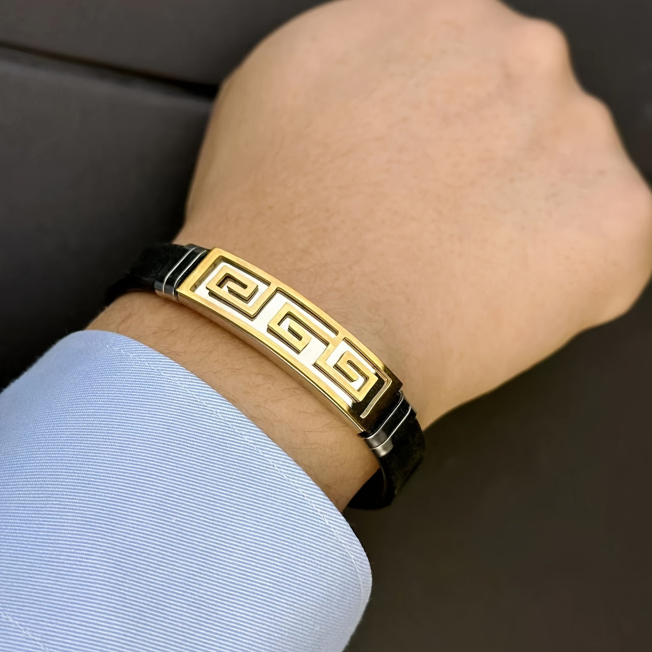 This stylish PU leather bracelet for men features a unique Great Wall pattern, suitable for wearing on the wrist or cuff. It makes a perfect artificial jewelry gift.
