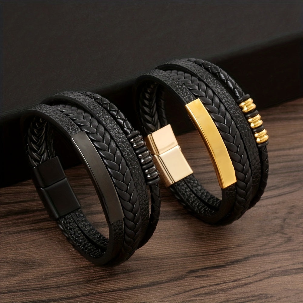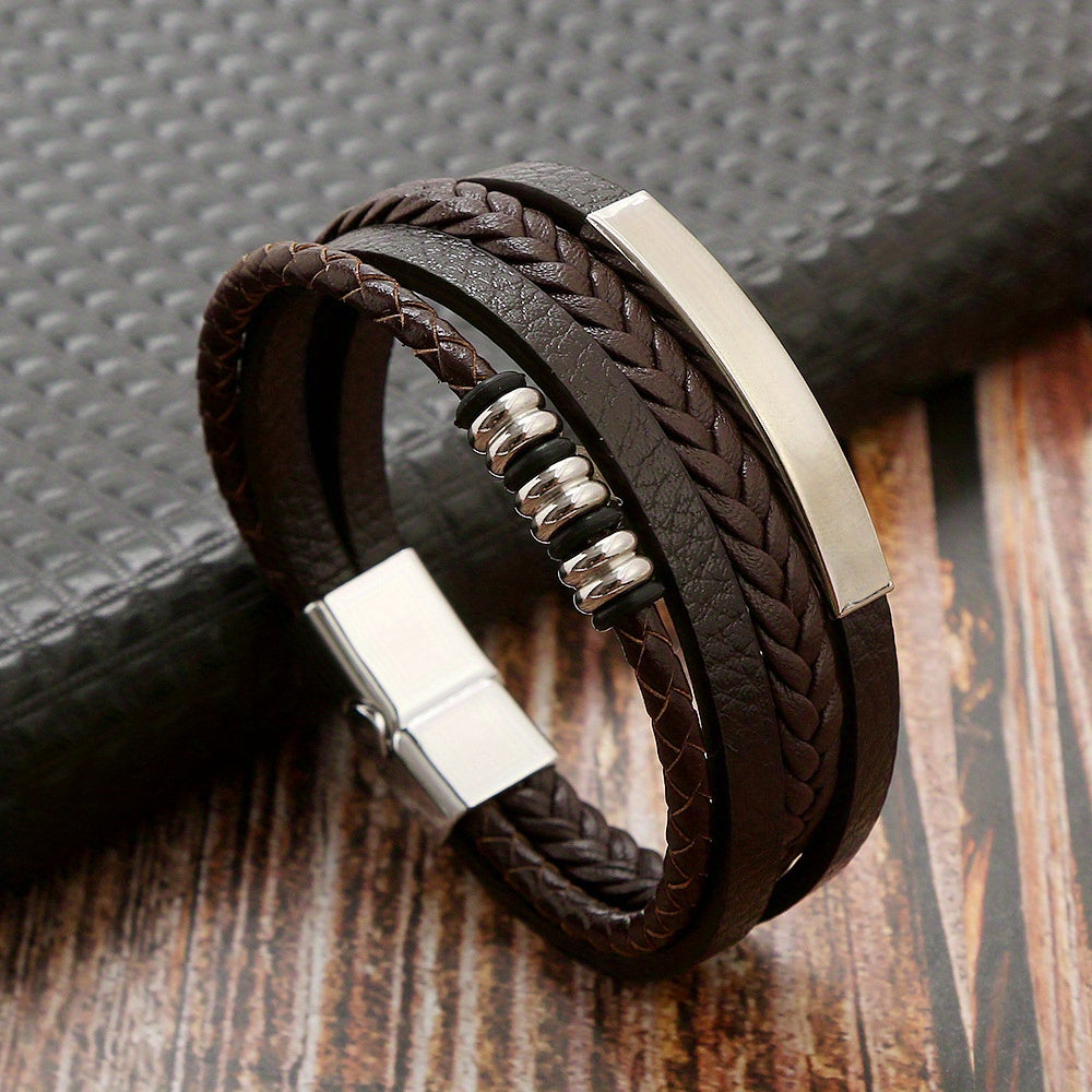This stylish and layered bracelet is made of high-quality PU leather, perfect for daily wear or as a gift for family and friends.